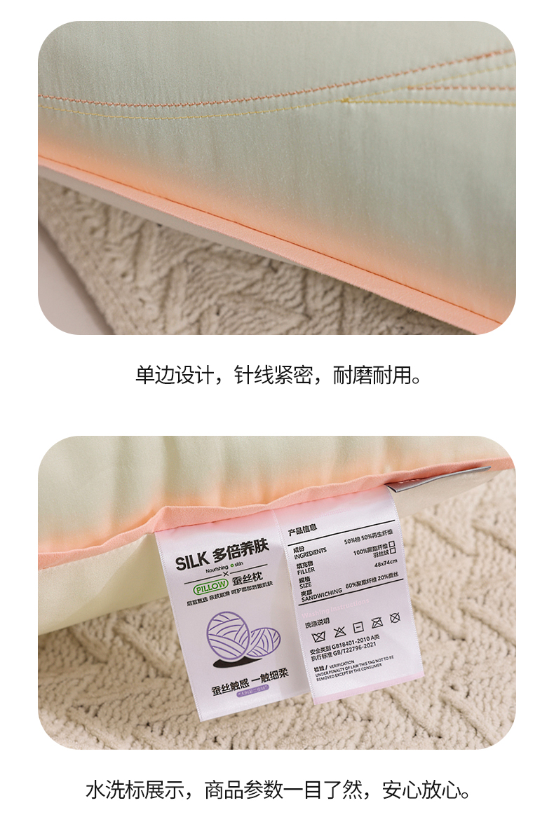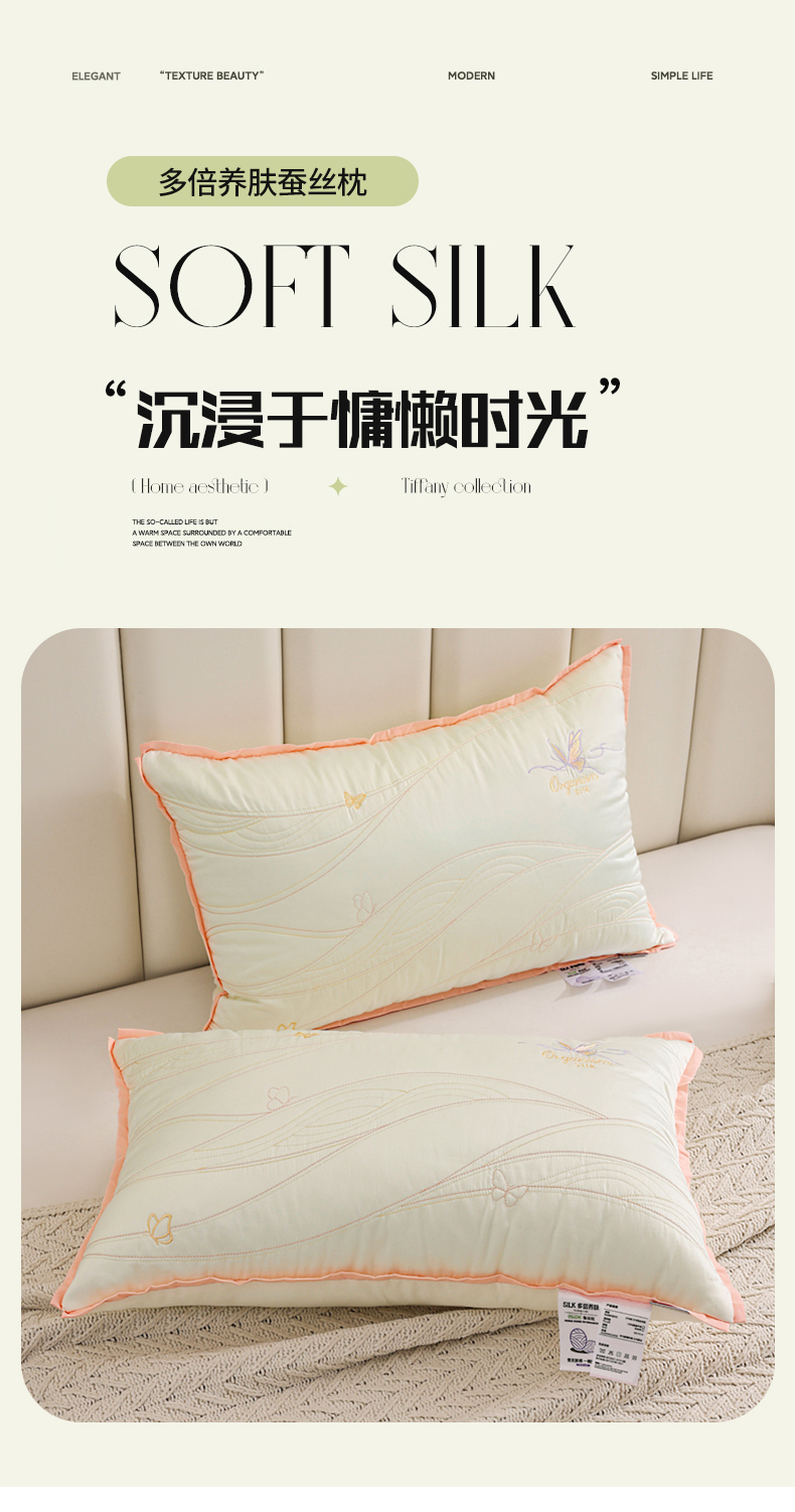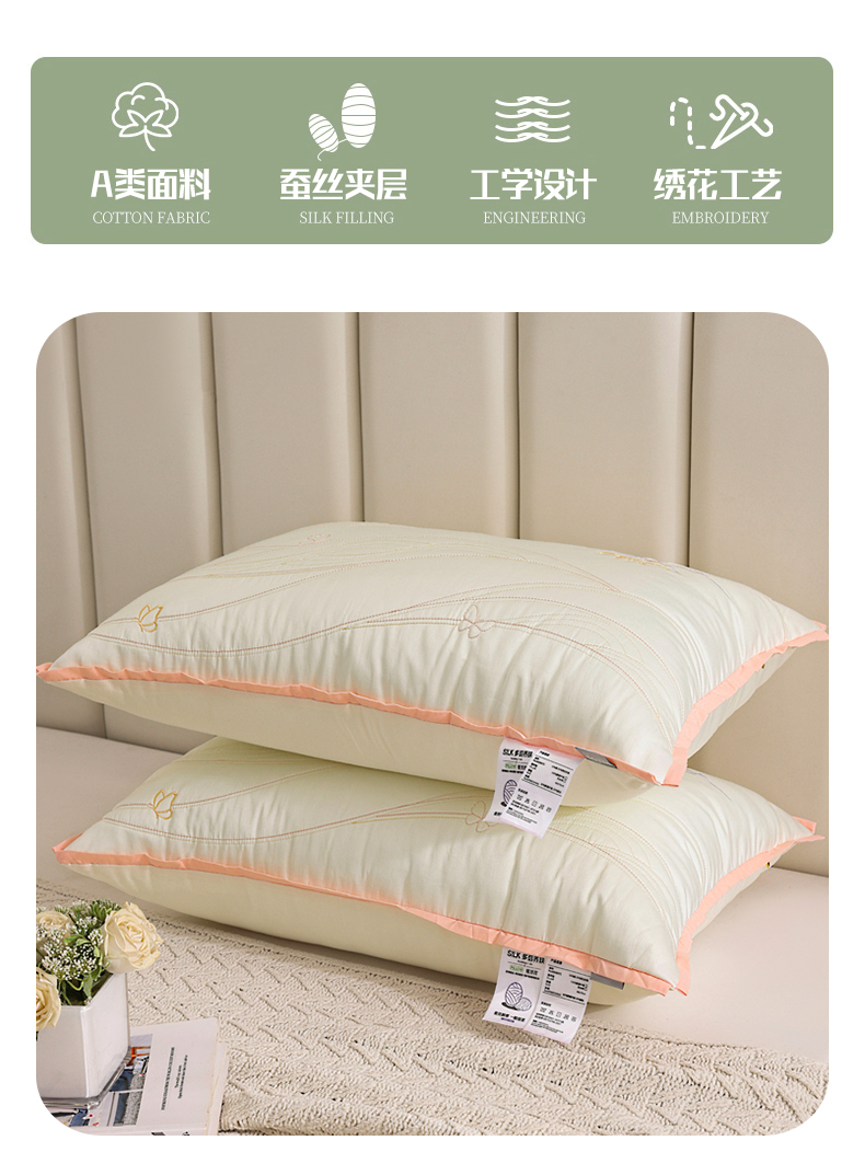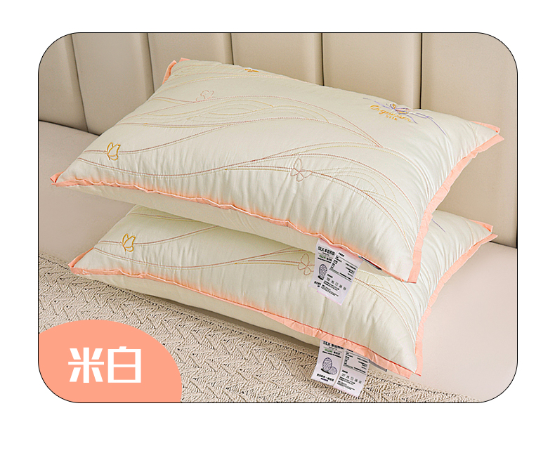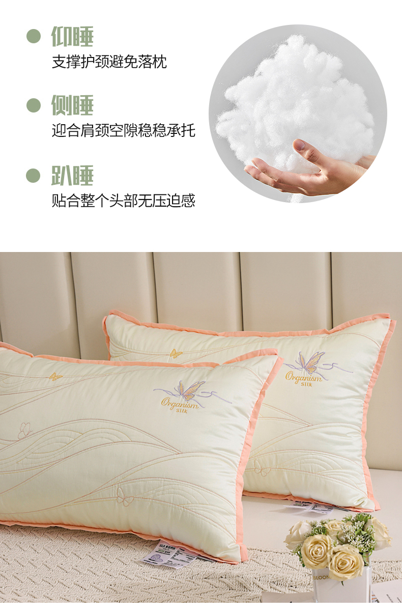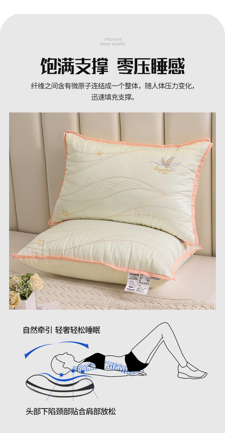 商品名称:锦鲤枕芯 2025新款A类母婴级蚕丝蛋白多倍养肤枕芯酒店护颈抗菌防螨枕头 米色 600g【低枕】