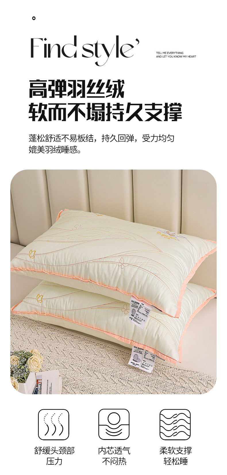 (总)锦鲤枕芯 2025新款亲肤磨毛高弹羽丝绒枕头酒店枕学生枕头枕芯,亲肤磨毛高弹羽丝绒枕