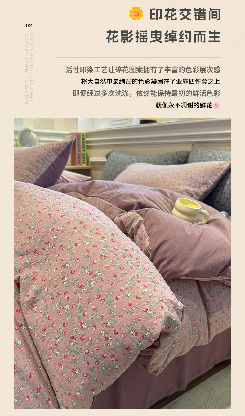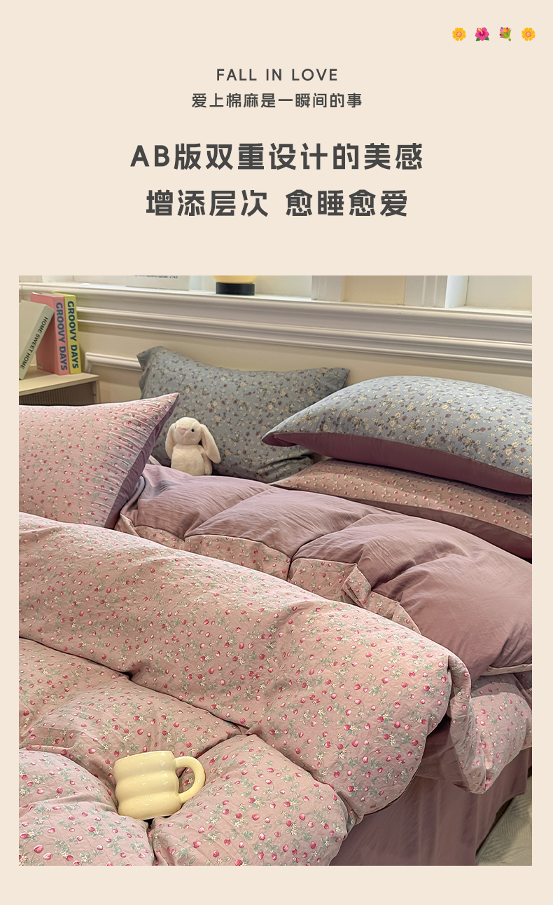 当前位置: 91家纺网 > 商品网购 > 床品套件 > 四件套 > 其它四件套 > 爱彼家纺 2025新款中古风亚麻水洗棉四件套-玫瑰系列-纽扣款 玫瑰-暖熙之境