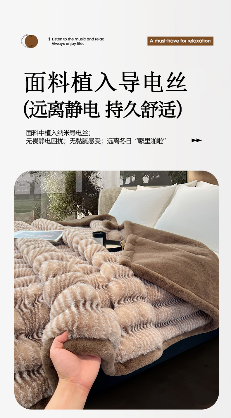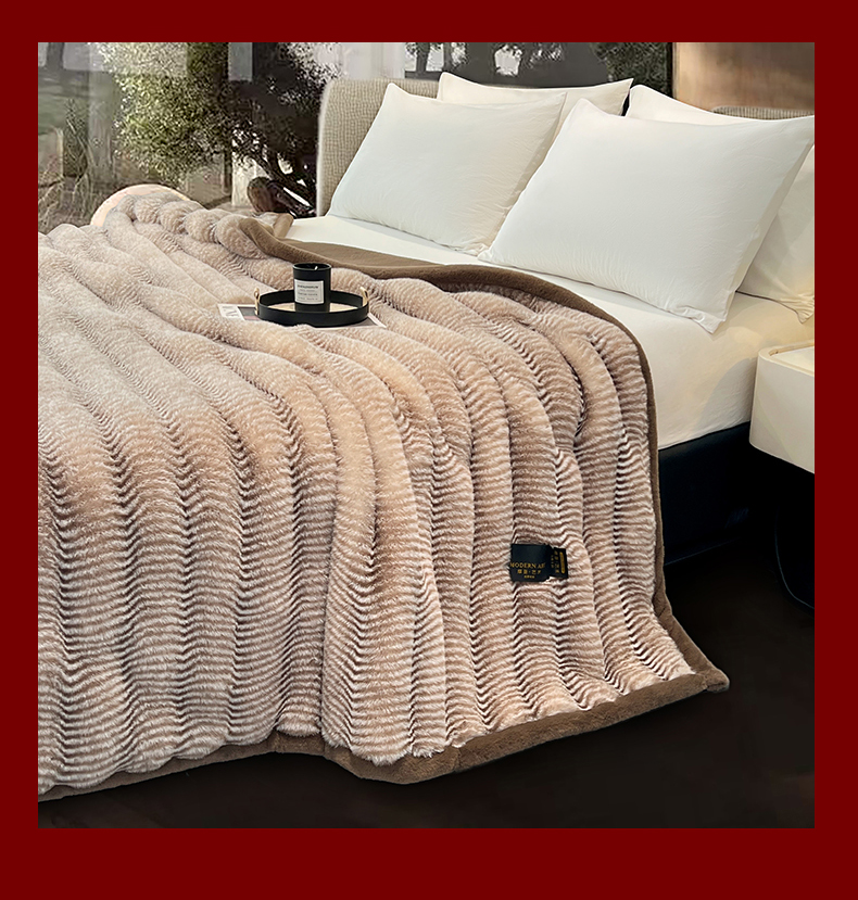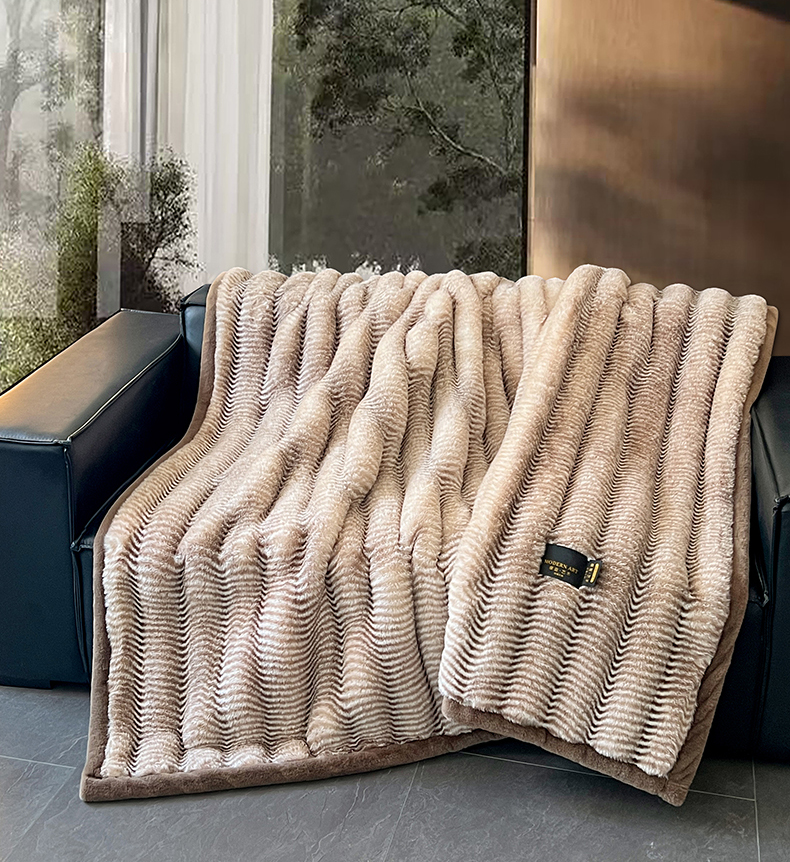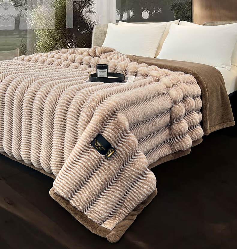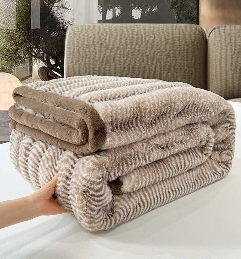 商品名称:凯轩毛毯网销专供 2025新款婚庆仿皮草彩波纹艺术毯毛毯毯子-彩波纹 彩波纹-咖啡棕