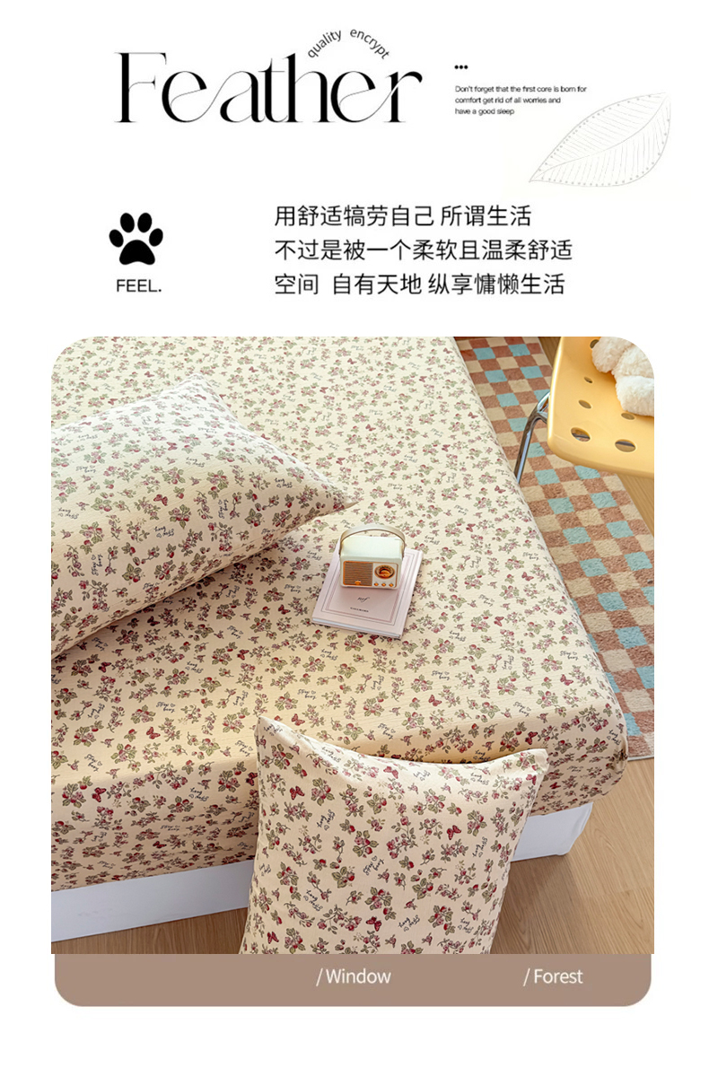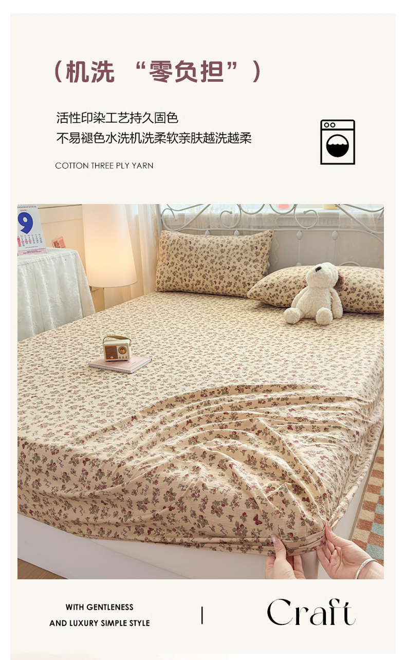 • 91家纺网 家纺一手货源 找家纺 爱彼家纺 2025新款水洗水洗棉印花床笠单品床笠床笠三件套风格一 莓花蝶语