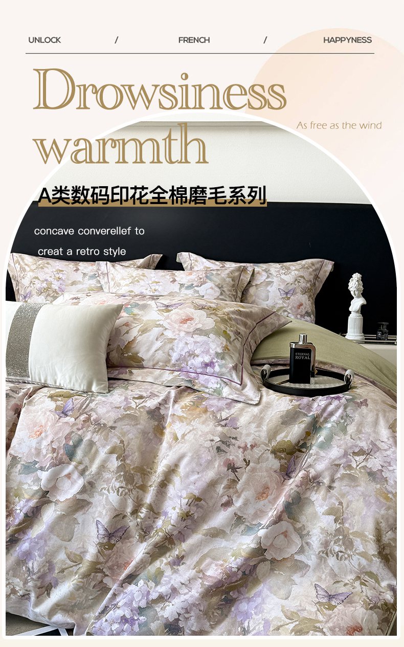 当前位置: 91家纺网 > 商品网购 > 床品套件 > 四件套 > 普通磨毛四件套 > 梵克保罗 2025秋冬新款数码印花全棉磨毛单被套三件套四件套系列 暮云-黄