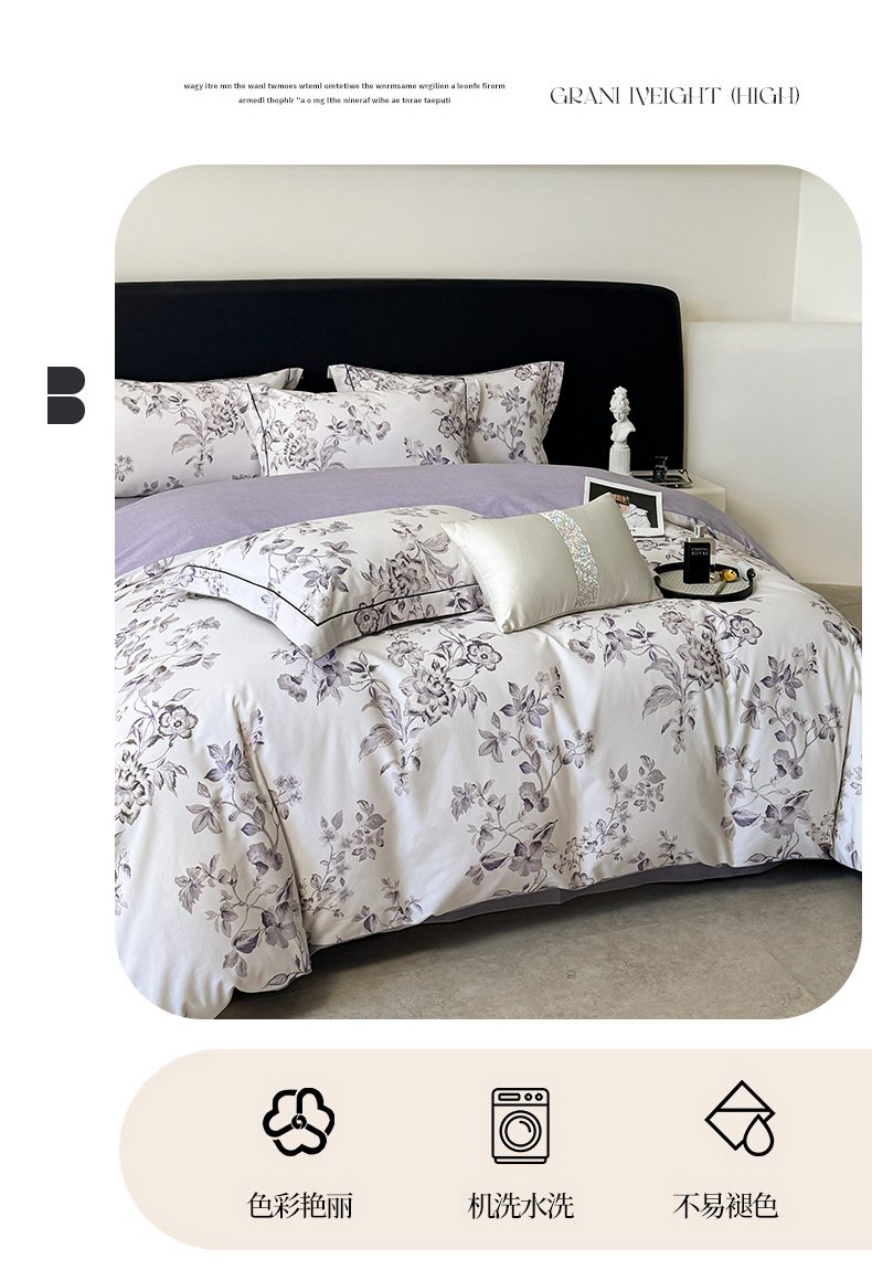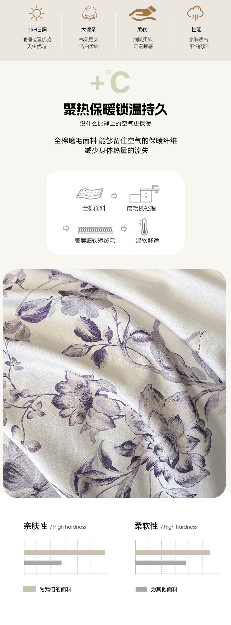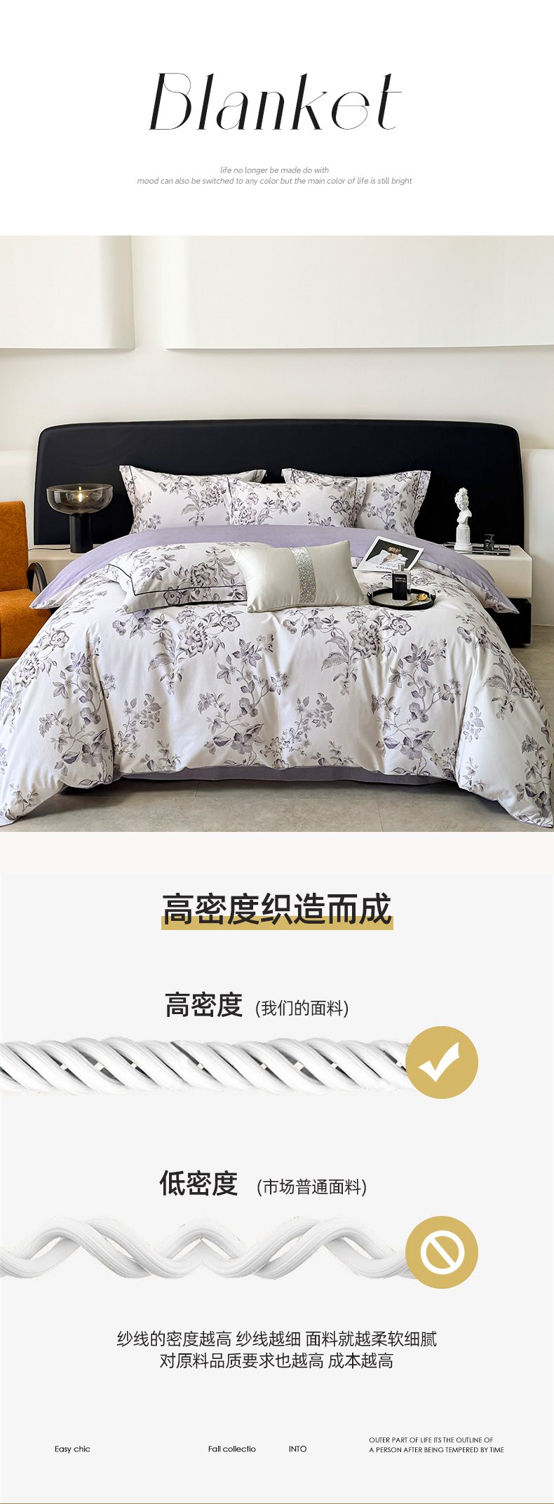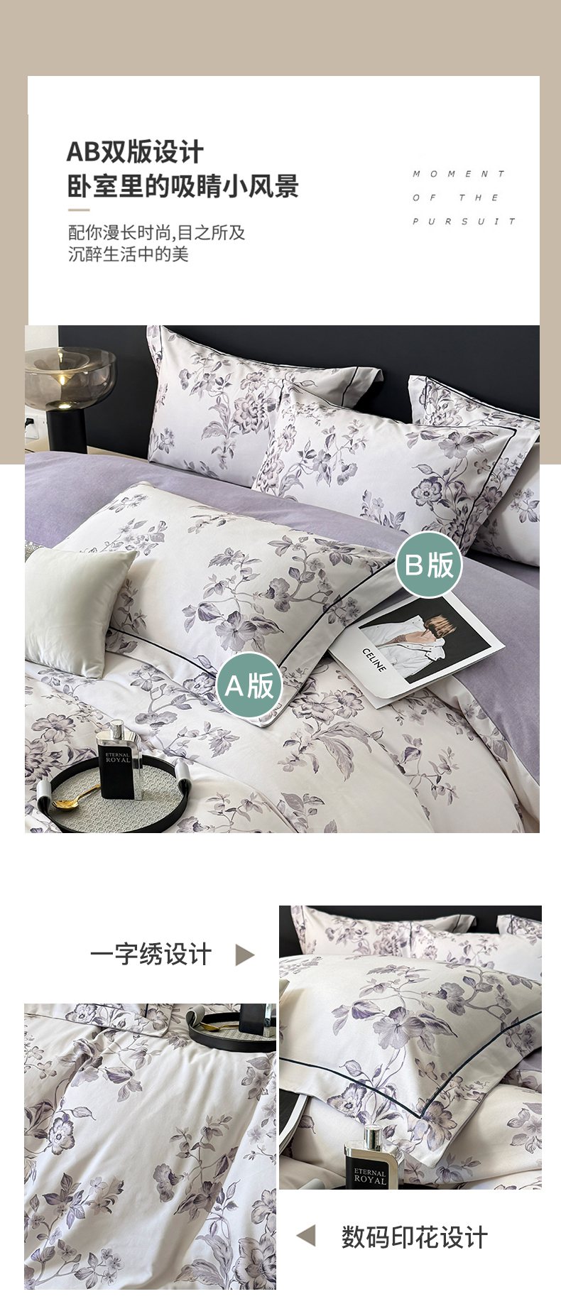 当前位置: 91家纺网 > 商品网购 > 床品套件 > 四件套 > 普通磨毛四件套 > 梵克保罗 2025秋冬新款数码印花全棉磨毛单被套三件套四件套系列 薇宁-白