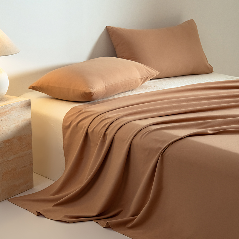 商品名称:Mr.pig猪先生水洗棉 2025新款A类50支双股全棉纯棉贡缎磨毛单床单 太妃棕