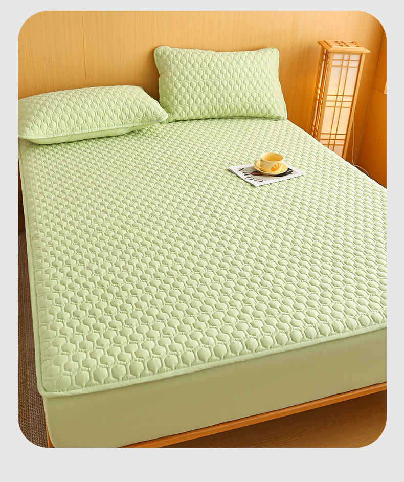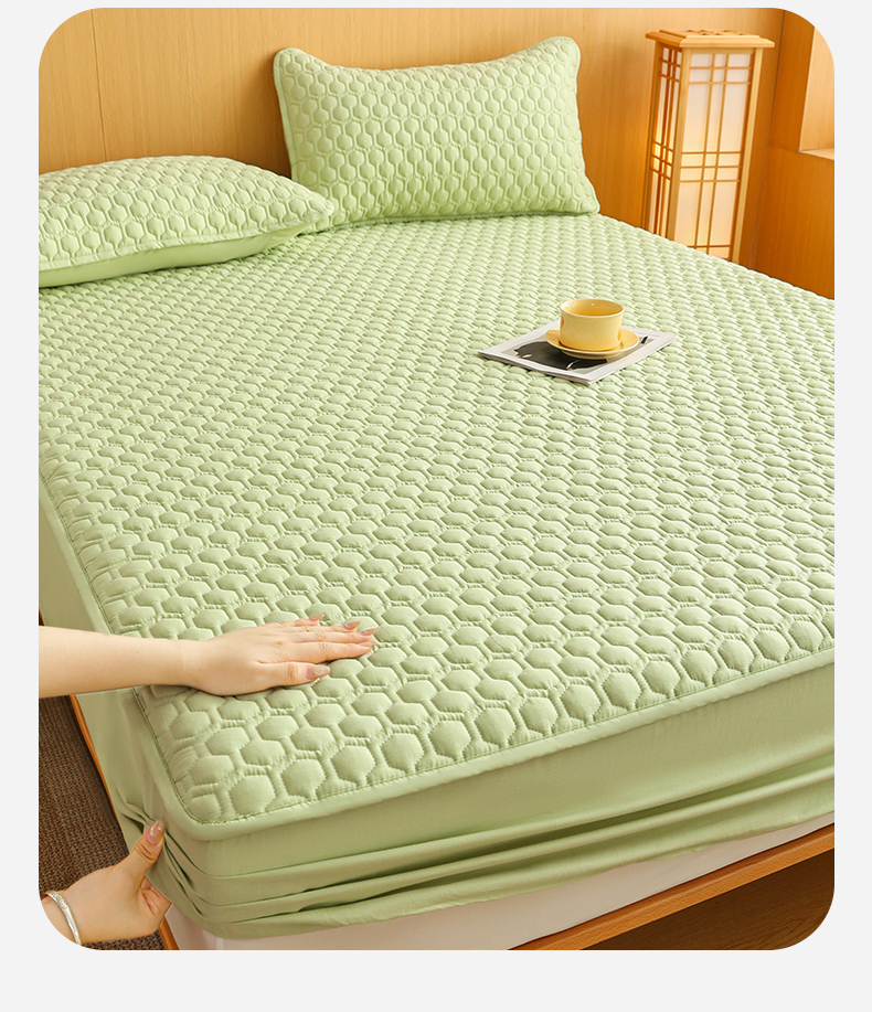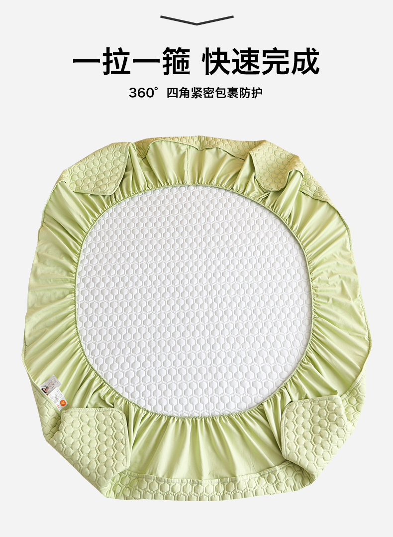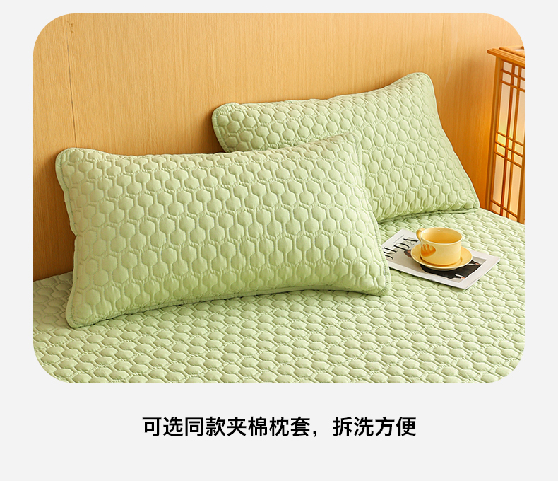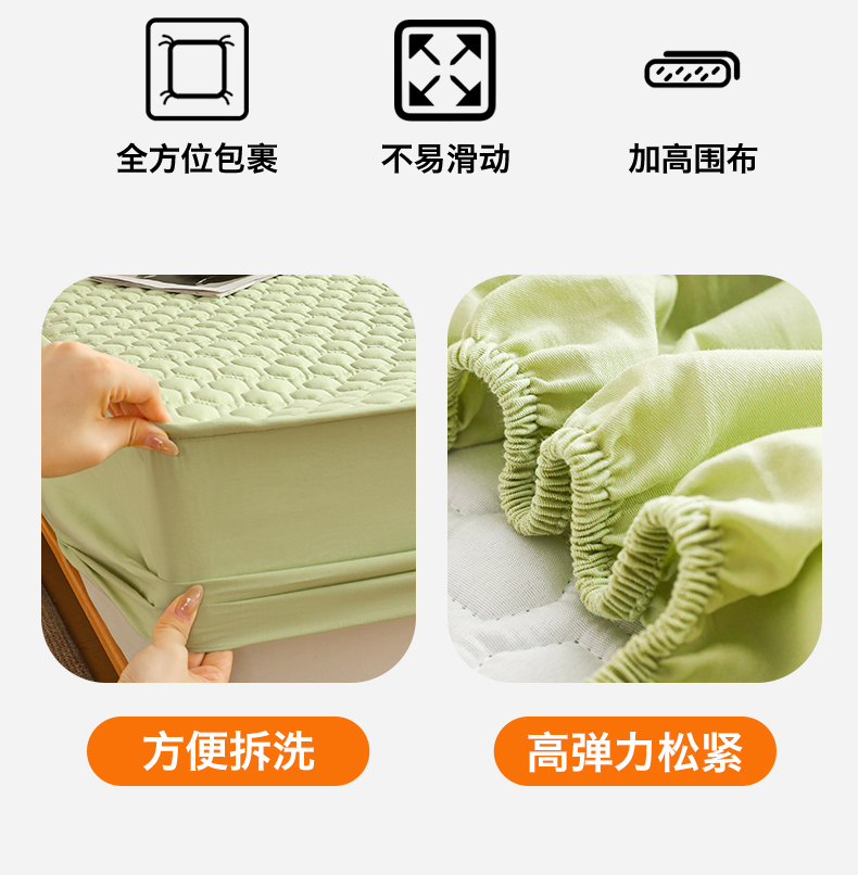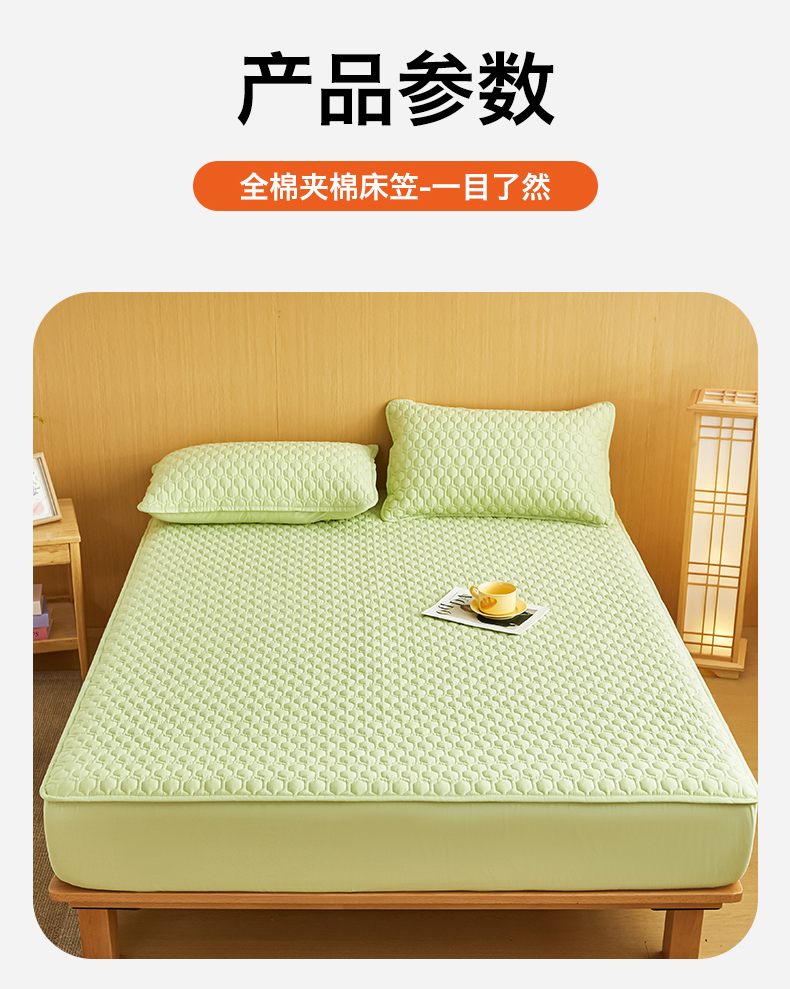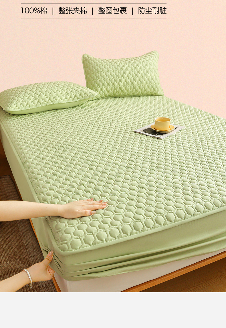 • 91家纺网 家纺一手货源 找家纺 恒爱家纺 2025新款全棉绗绣单品床笠 嫩绿