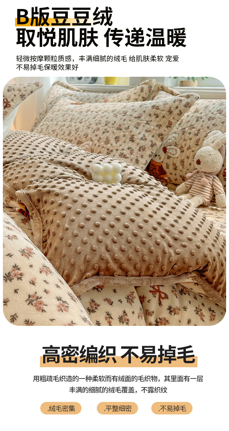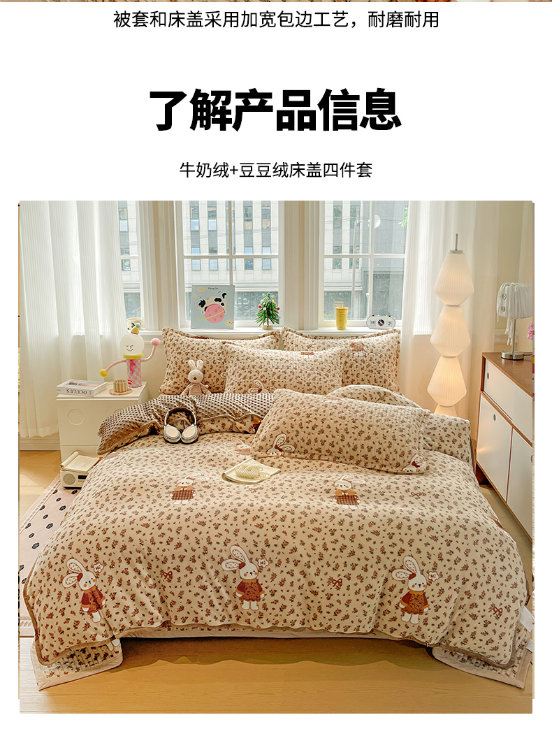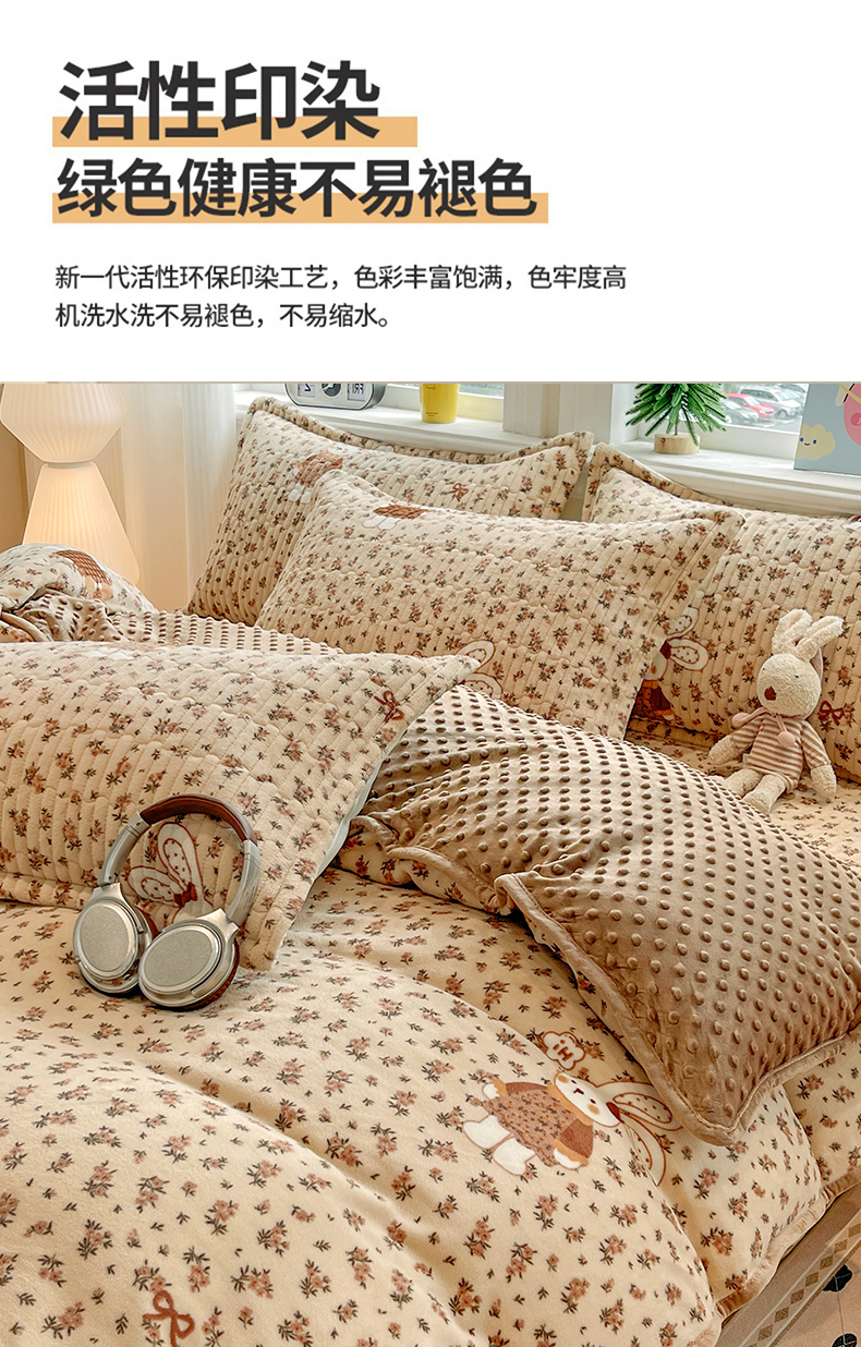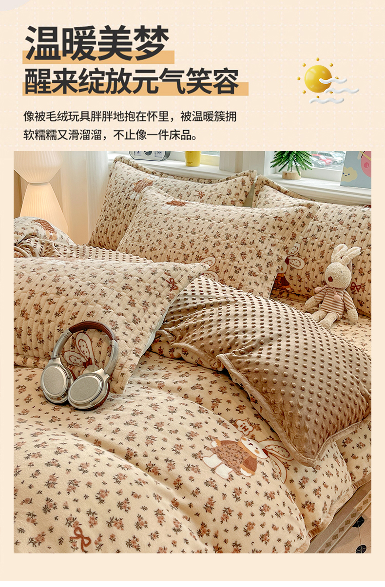商品名称:元熙 2025新款印花小清新韩国绒牛奶绒豆豆床盖四件套-织梦时空
