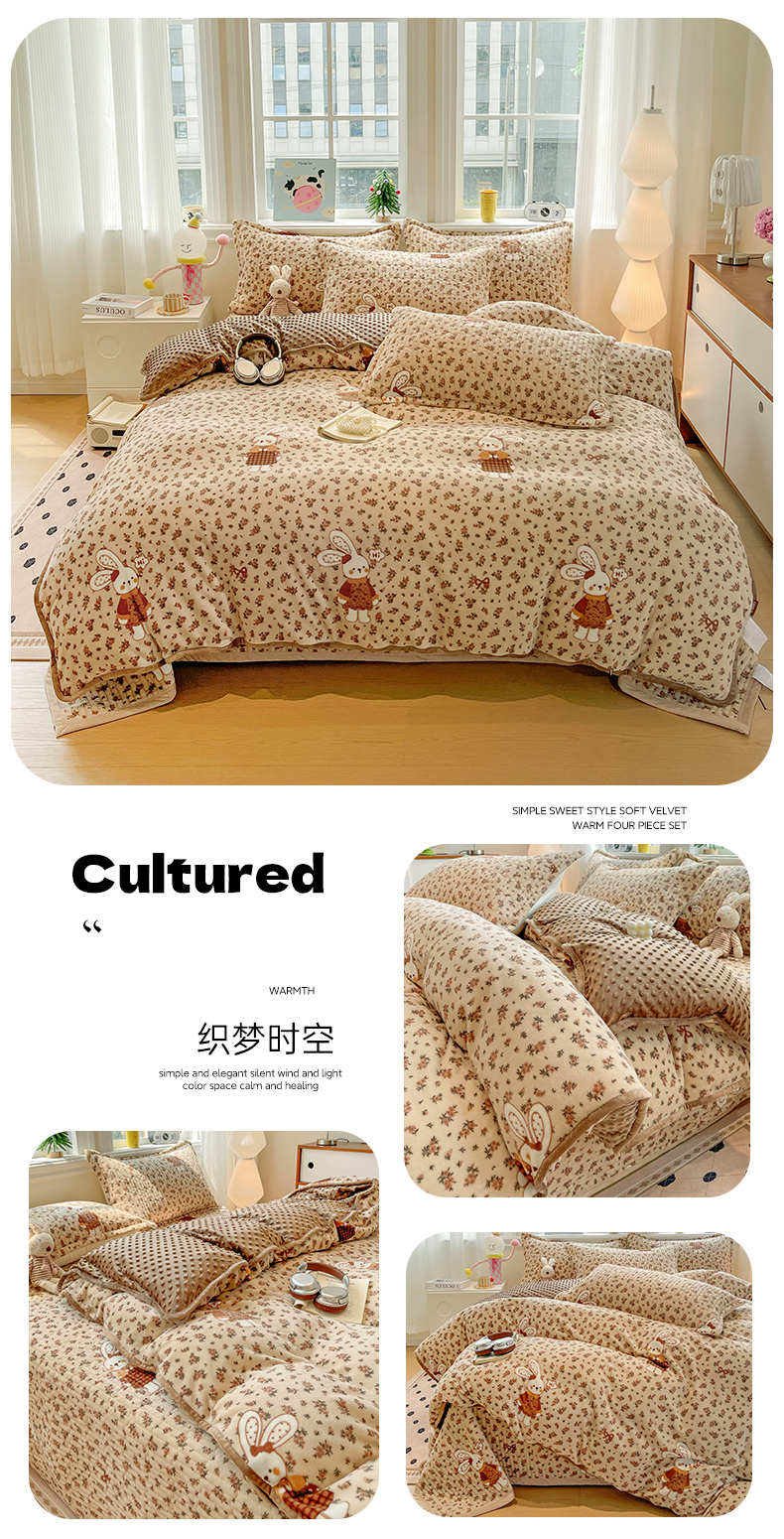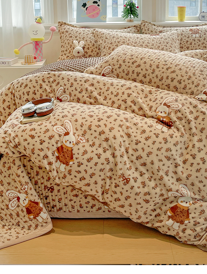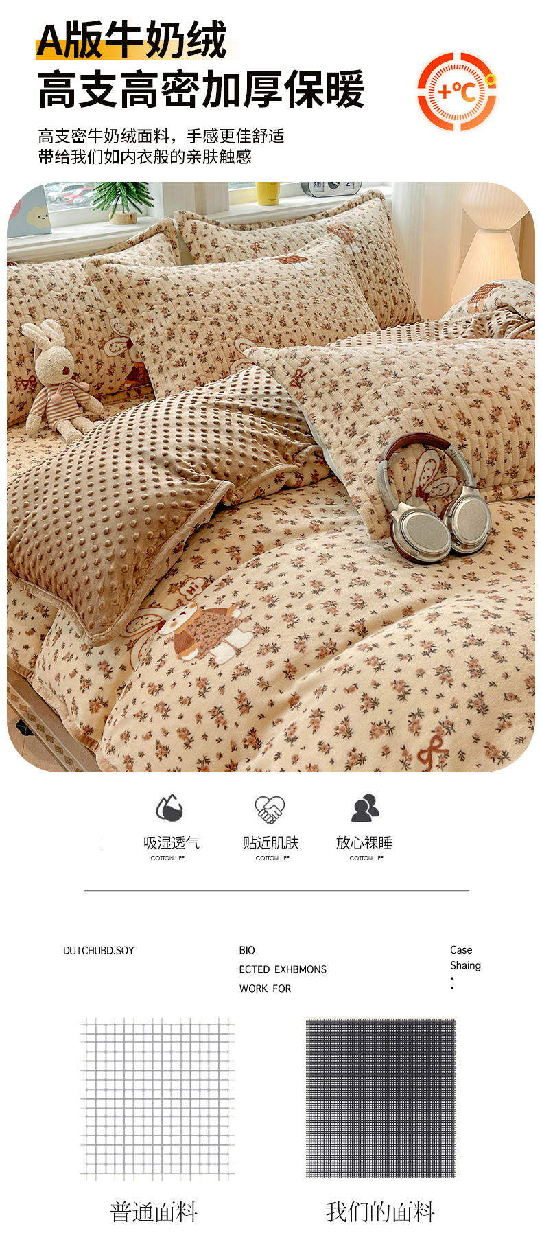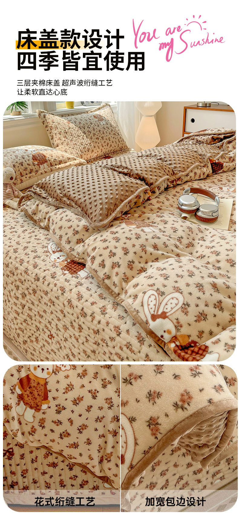 商品名称:元熙 2025新款印花小清新韩国绒牛奶绒豆豆床盖四件套-织梦时空