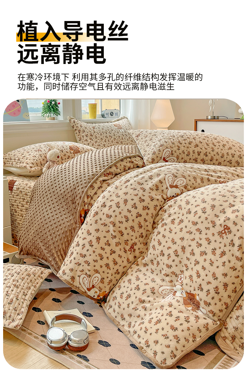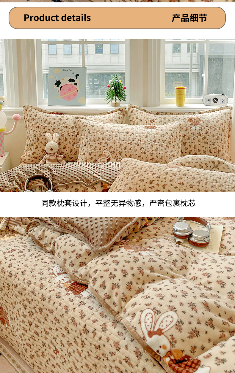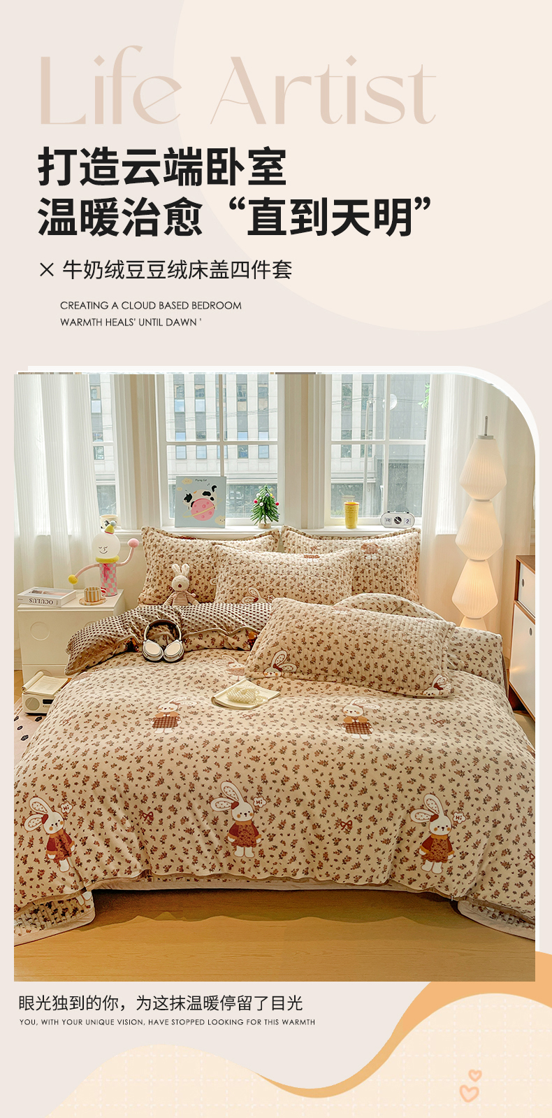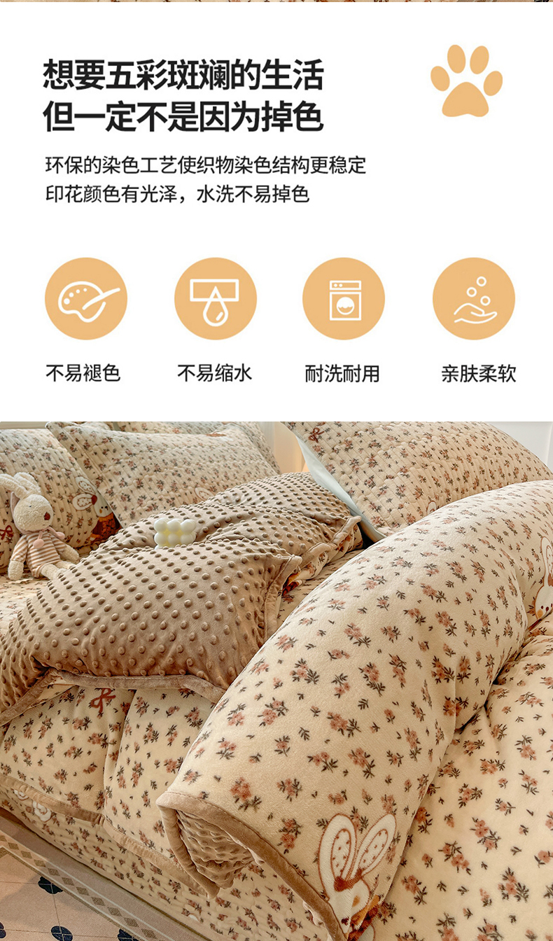 商品名称:元熙 2025新款印花小清新韩国绒牛奶绒豆豆床盖四件套-织梦时空