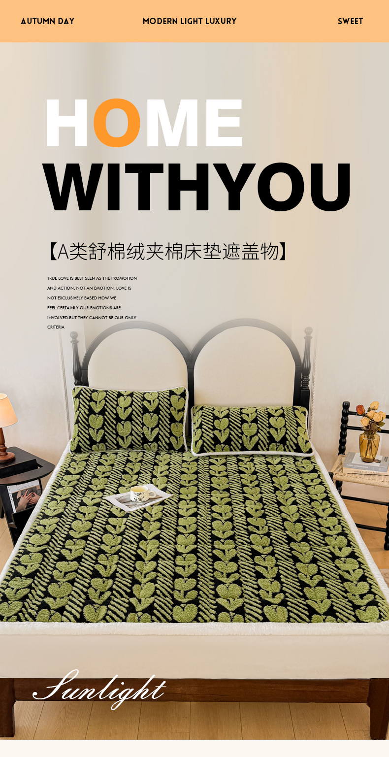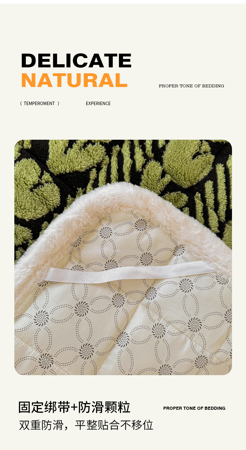 • 91家纺网 家纺一手货源 找家纺 LIFE.丽芙 2025秋冬新款色纱提花舒棉绒加厚夹棉床垫床护垫单件简约床褥床垫子三件套 郁金香-草绿