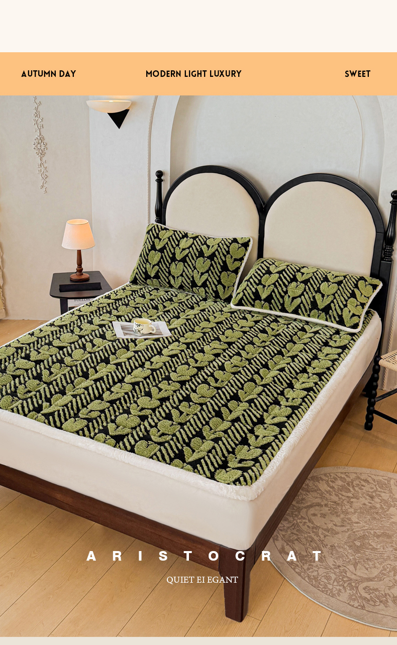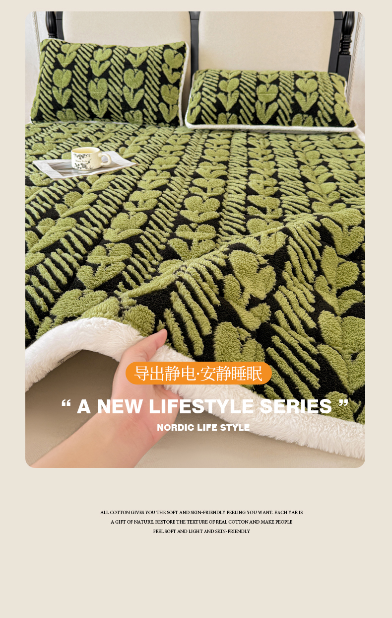 当前位置: 91家纺网 > 商品网购 > 床垫/床褥 > LIFE.丽芙 2025秋冬新款色纱提花舒棉绒加厚夹棉床垫床护垫单件简约床褥床垫子三件套 郁金香-草绿