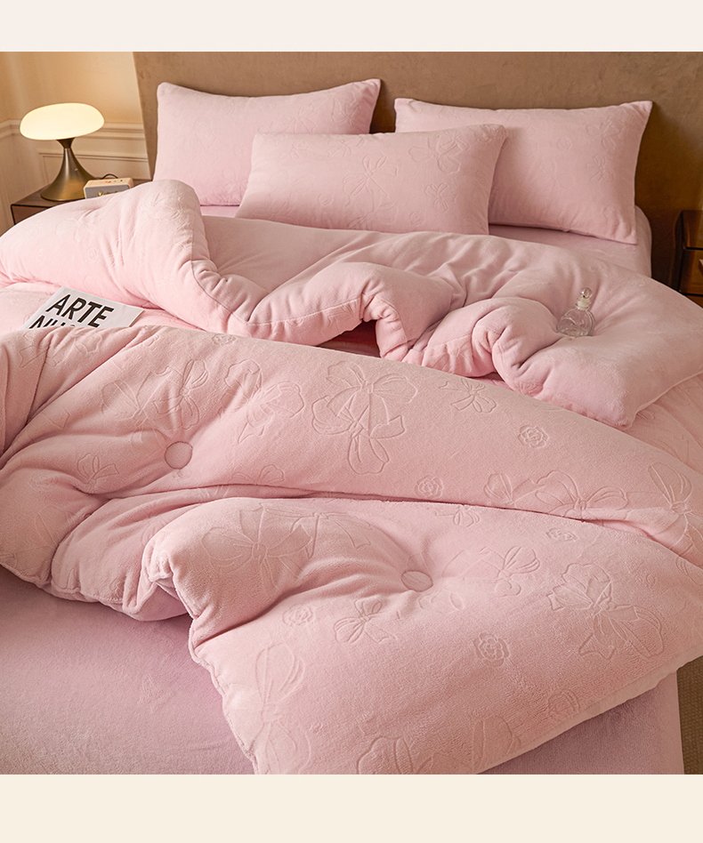 星座家纺 2025新款雕花绒被子被芯冬被 蝴蝶结-粉