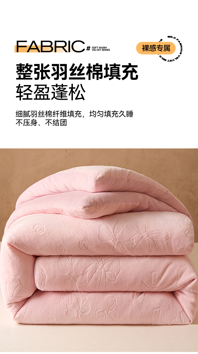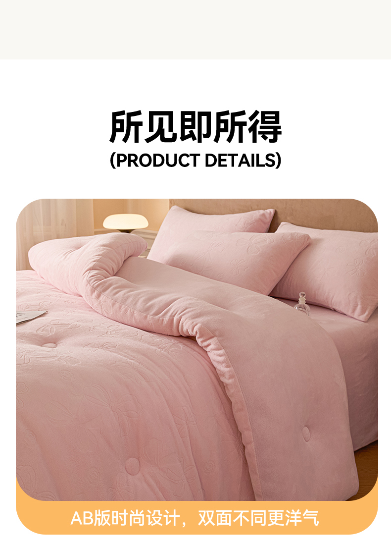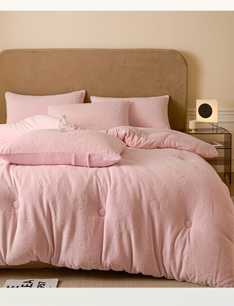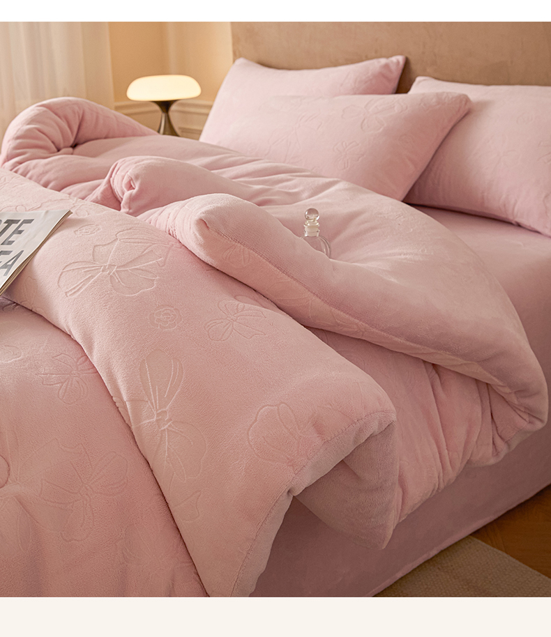 商品名称:星座家纺 2025新款雕花绒被子被芯冬被 蝴蝶结-粉