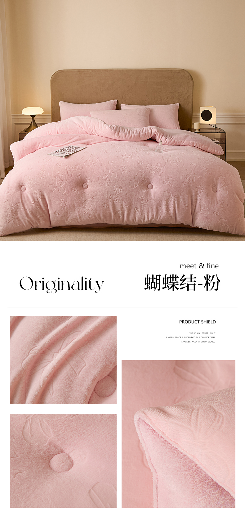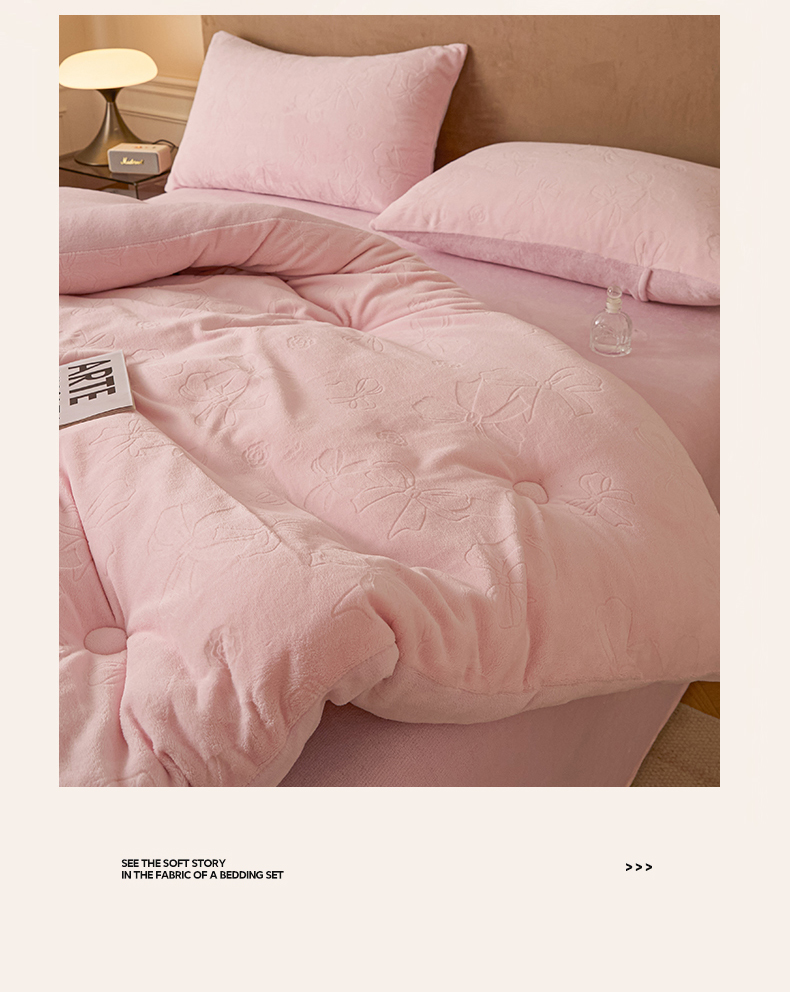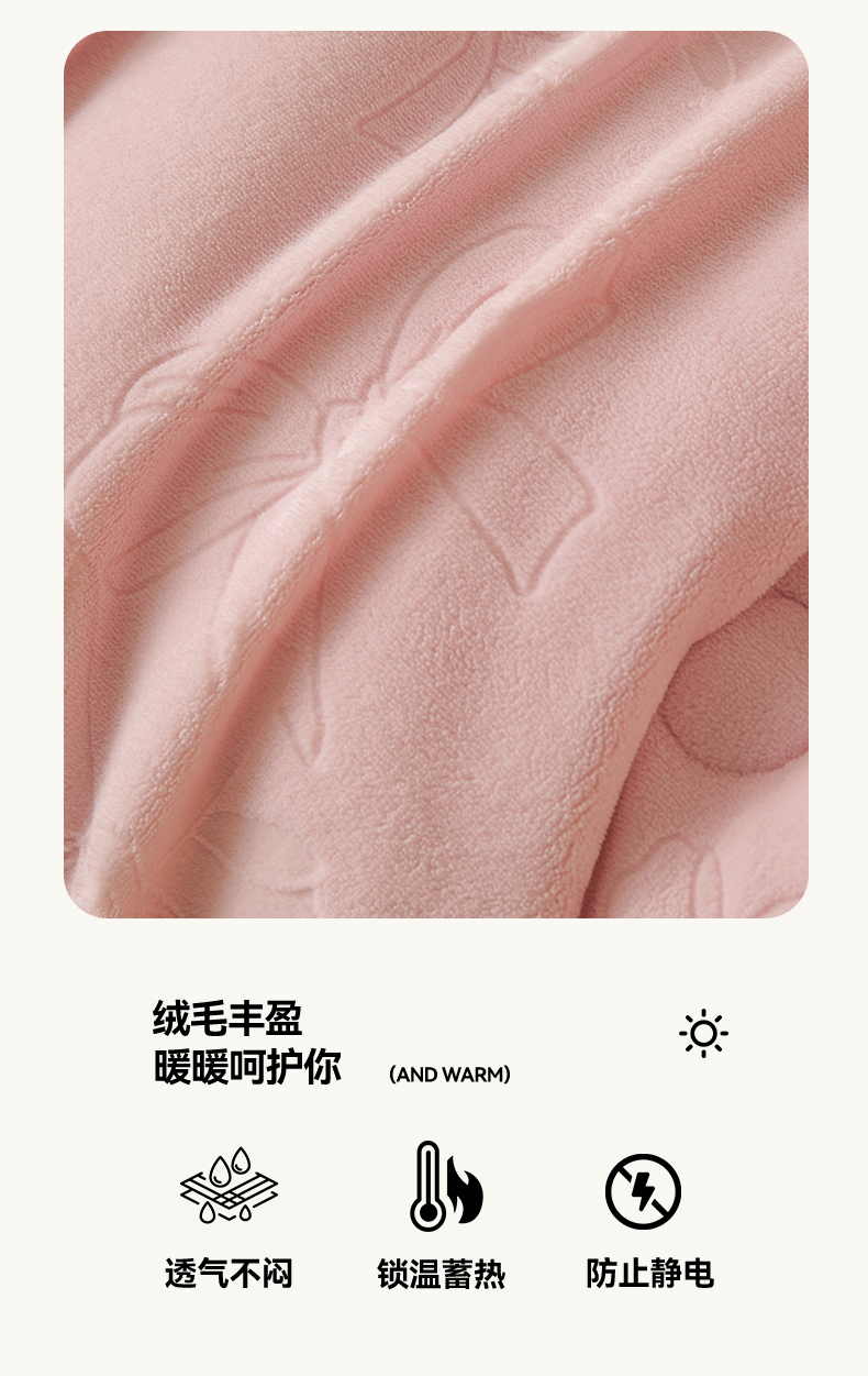 商品名称:星座家纺 2025新款雕花绒被子被芯冬被 蝴蝶结-粉