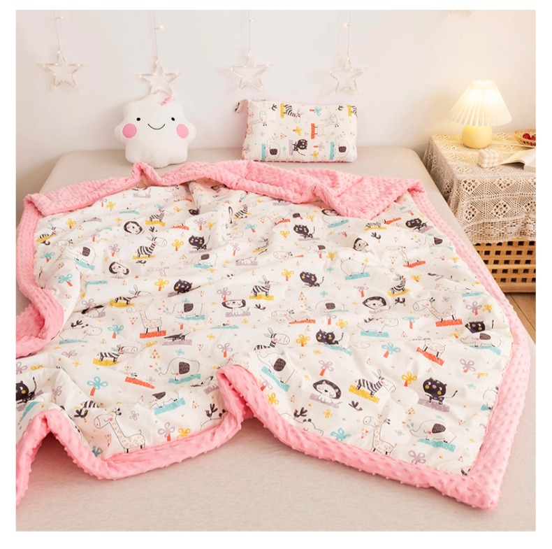 (总)十九色 2024新款华夫格纱全棉儿童夏凉被双层纱空调被,兔公主粉,相识,小马粉,小树林,小熊蓝,遇见,长颈鹿,草莓派,聪明鸭