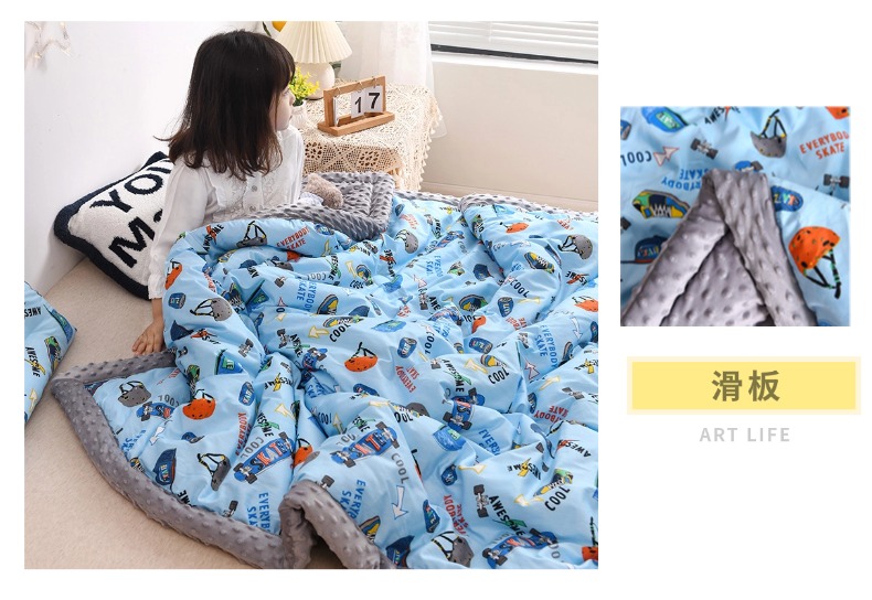 (总)十九色 2022新款夹棉豆豆被,动物世界,开心乐园,米奇,小公主,小恐龙,小苹果,小小交通队,游乐场,彩虹小马,草莓,滑板,糖果熊