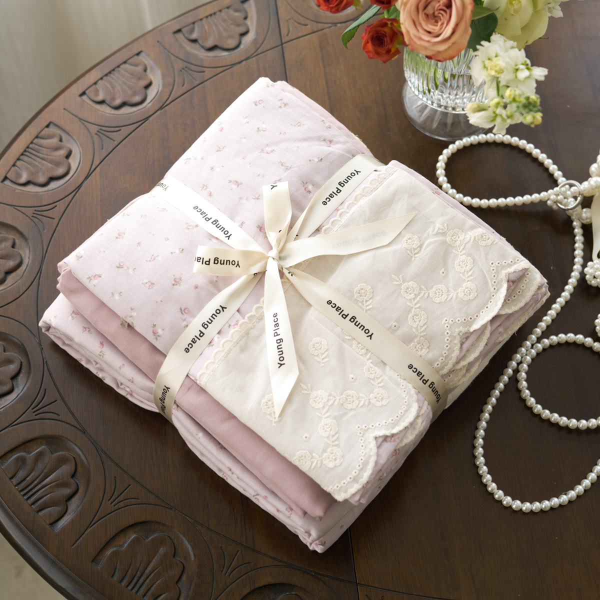 (总)洋铭区(原狠狠爱) 2026新款全棉纯棉双层纱刺绣蕾丝花边件套,蓓蕾兰花,草莓味,蝴蝶粉兔,花语香香,浪漫玫瑰,素雅情花,甜甜小花,小兰雏菊,紫花蔓蔓