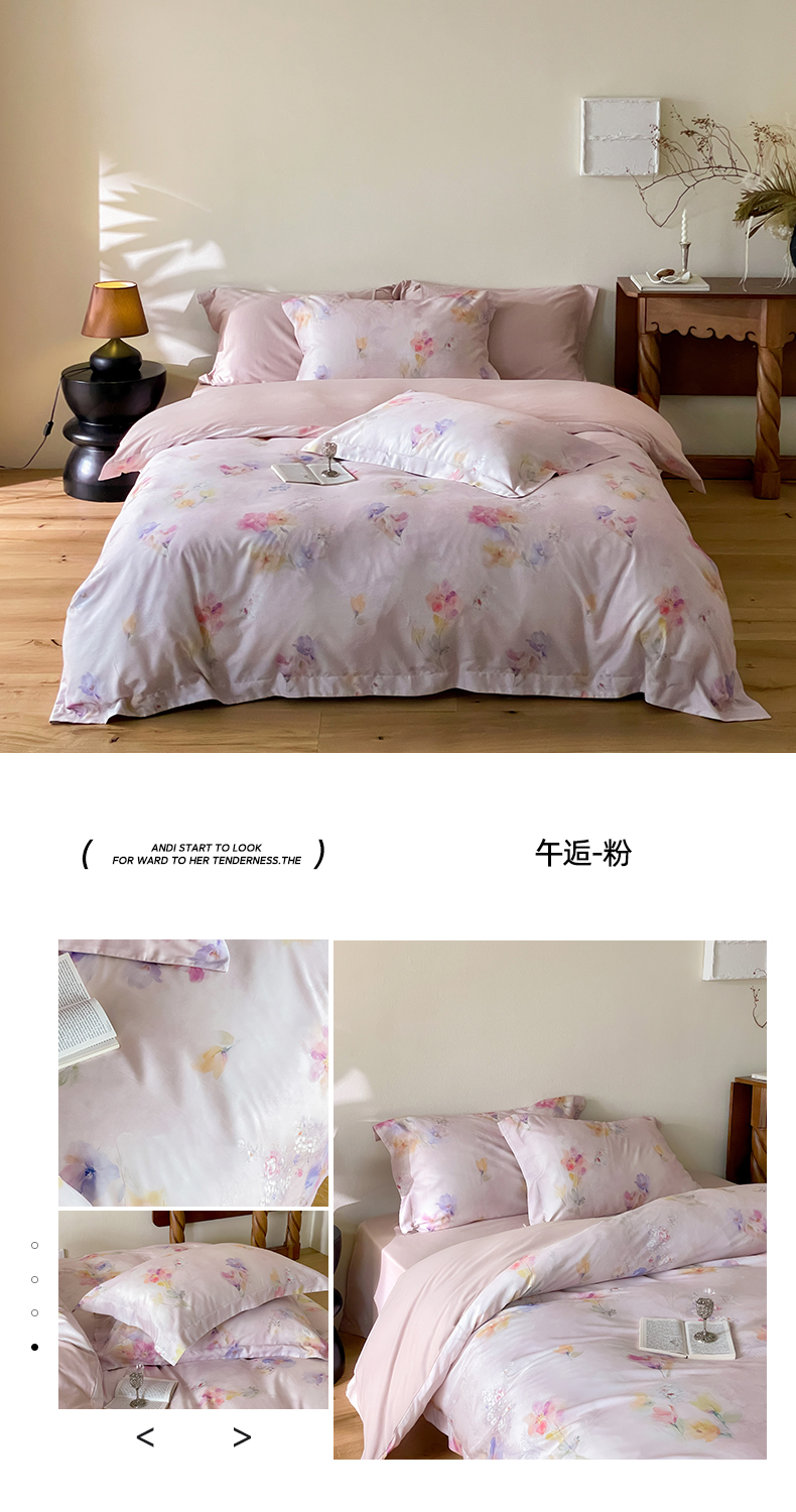 商品名称:禾时 2025新款天丝棉磨毛数码印花四件套 午逅-粉