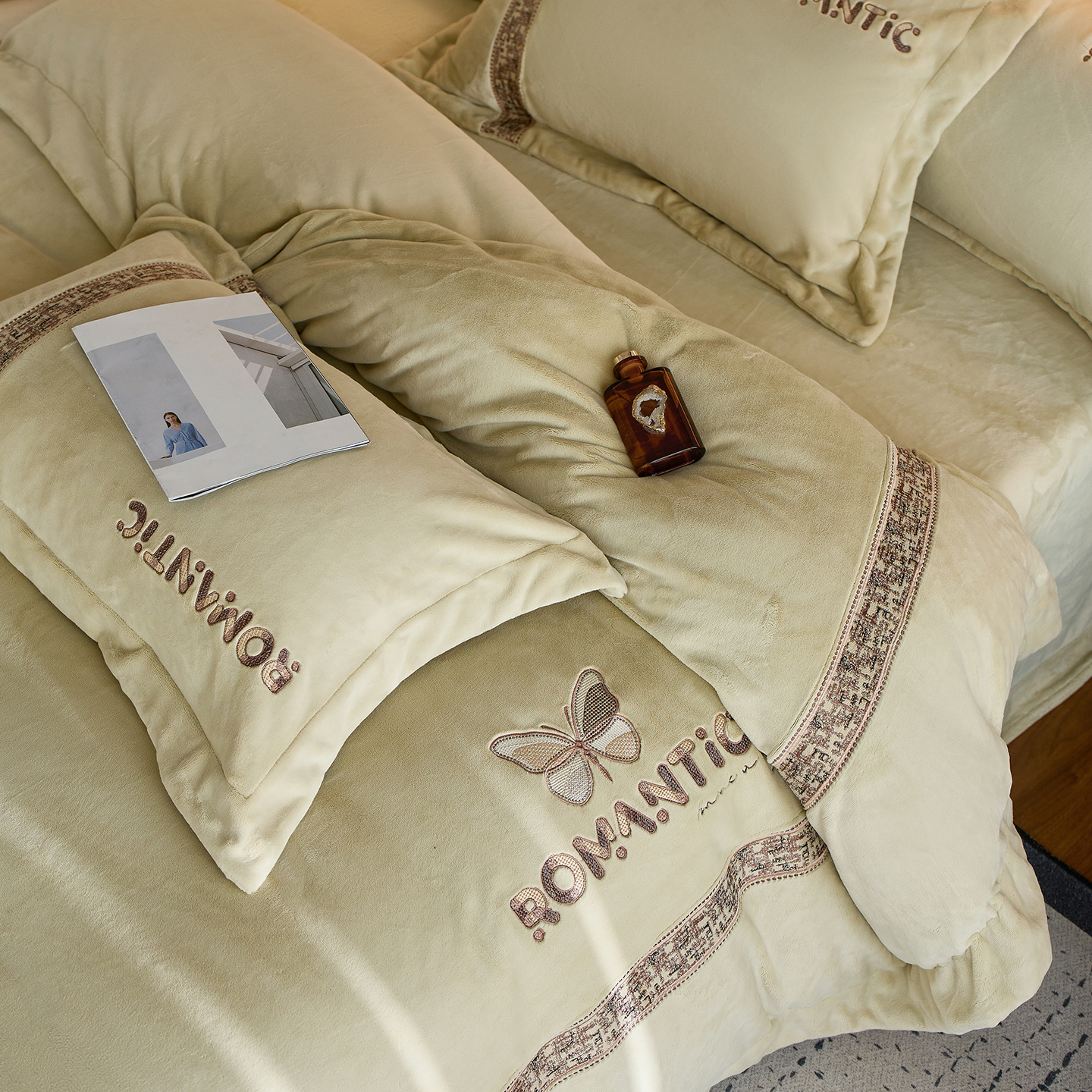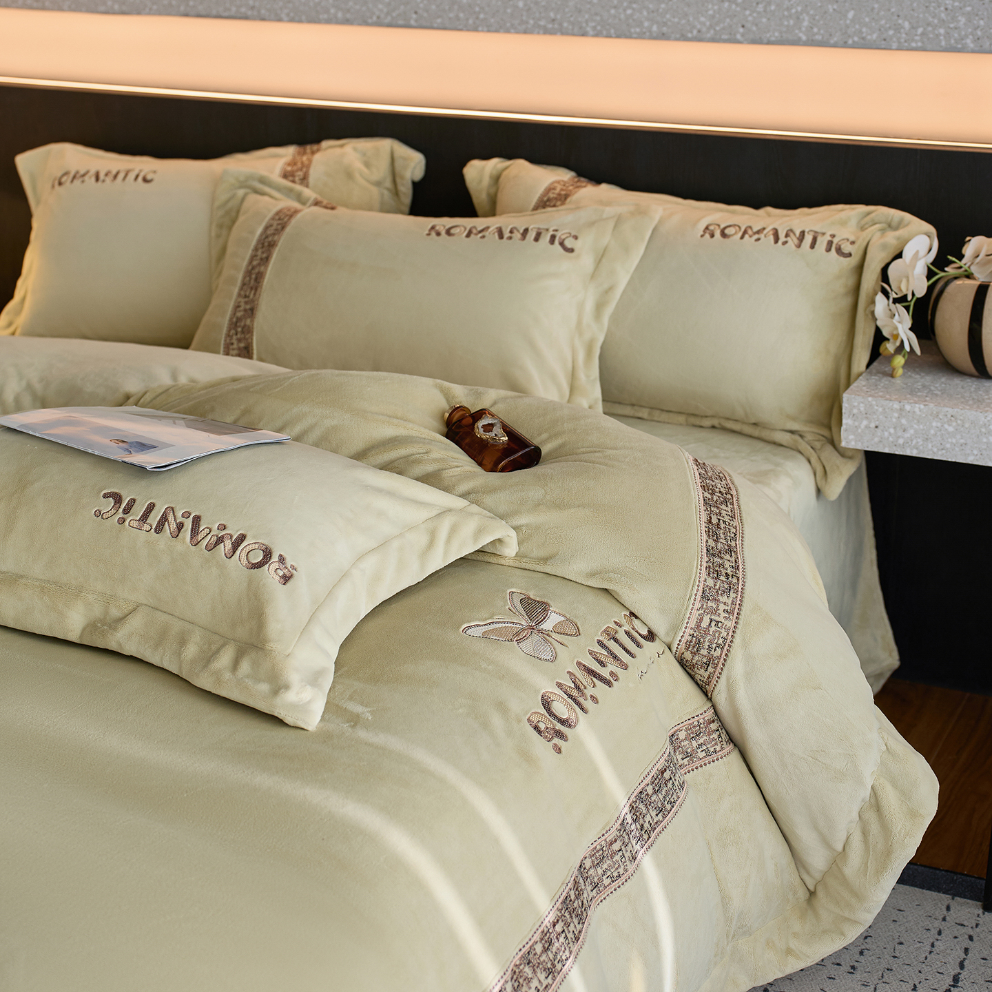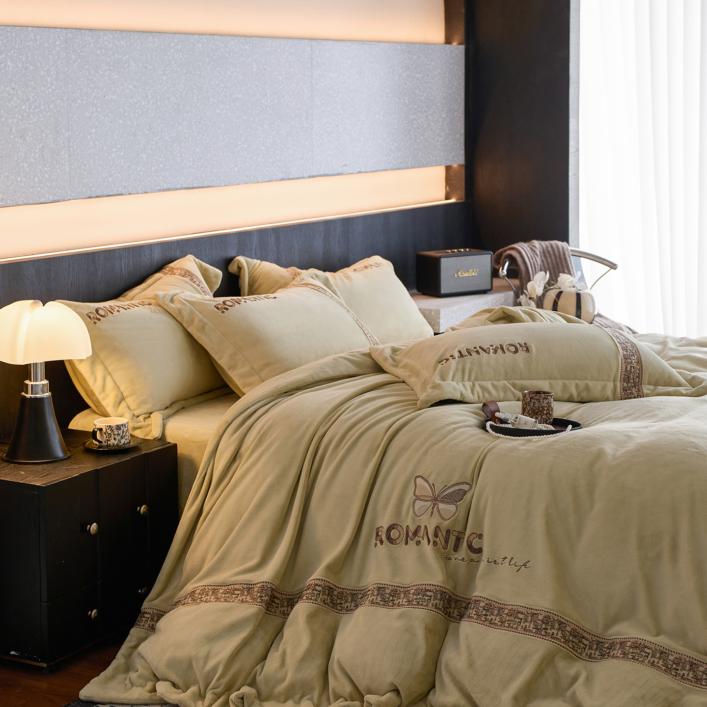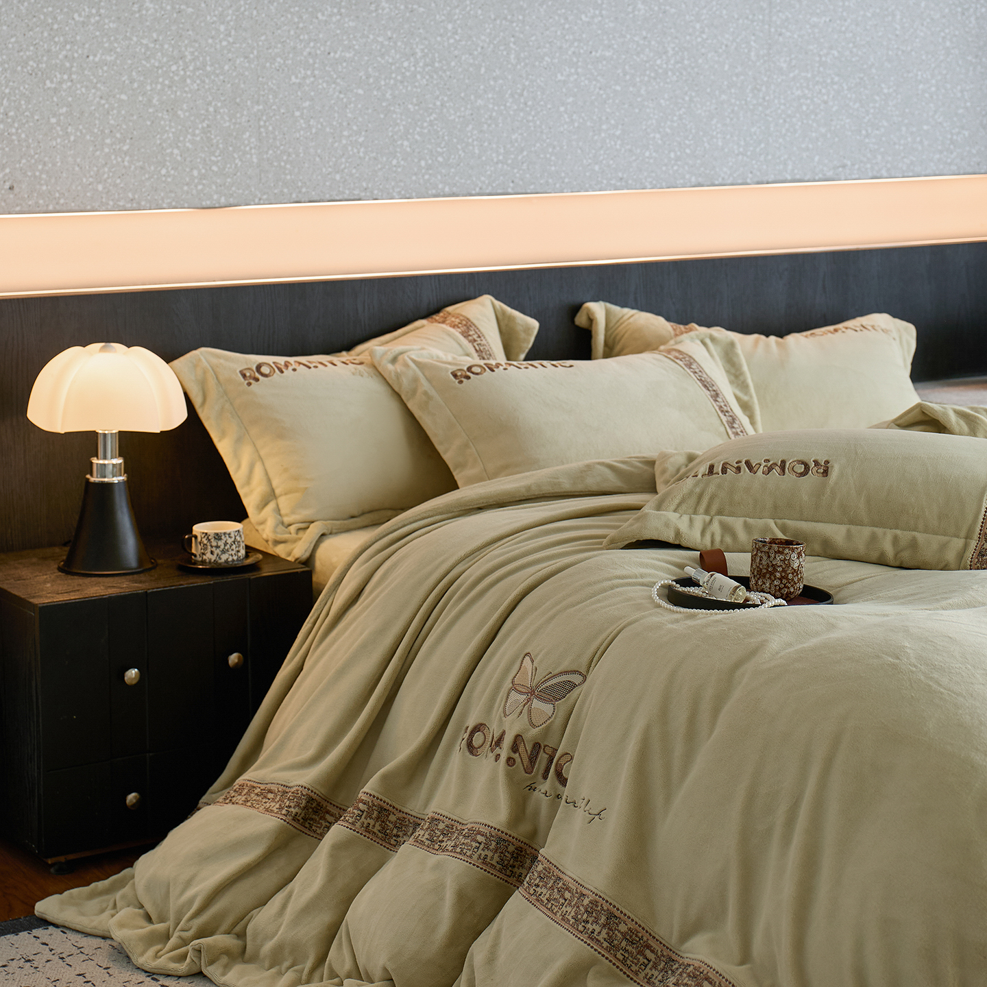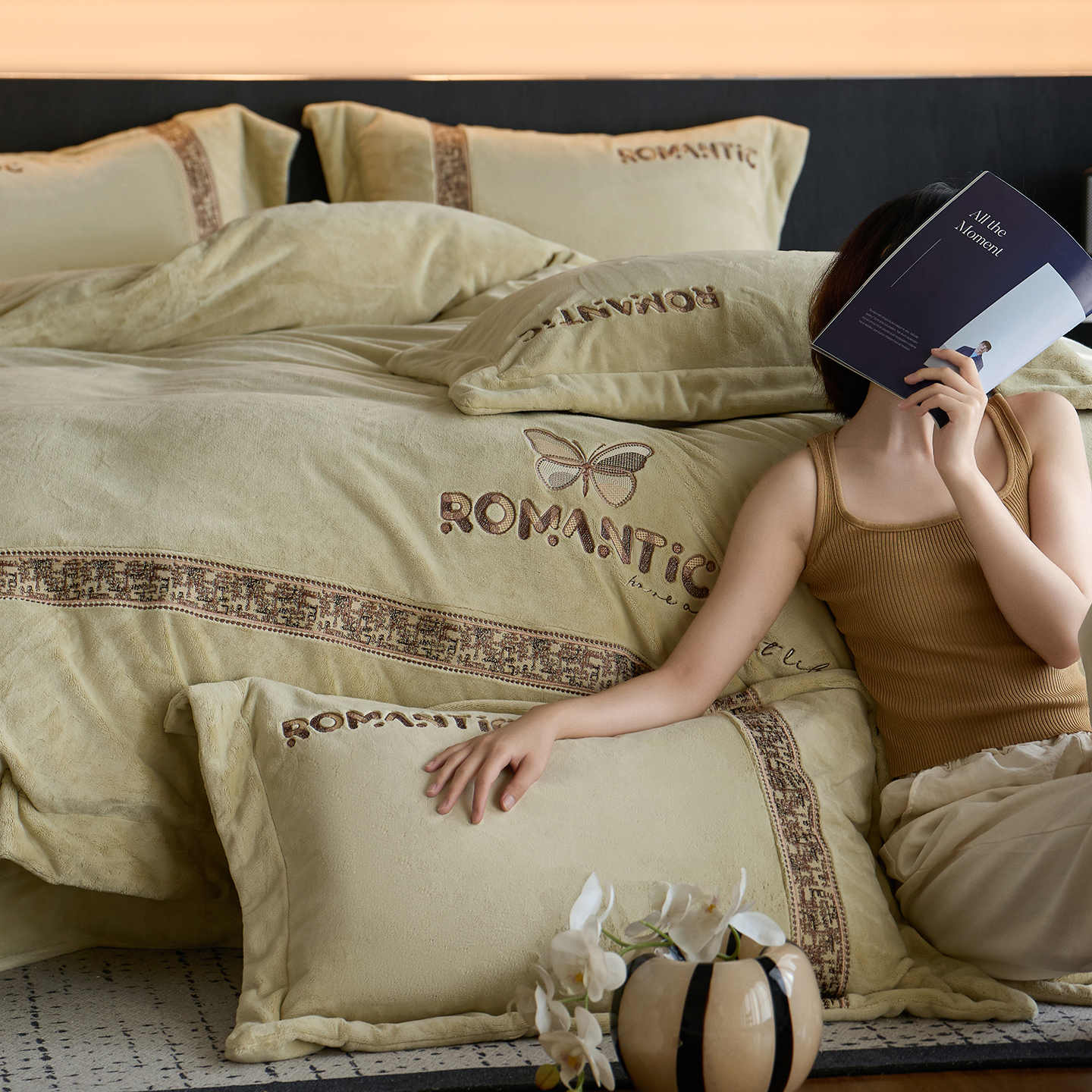 蓝梦 2025新款直播爆款270克全消光牛奶绒系列四件套-克罗地亚 浅绿