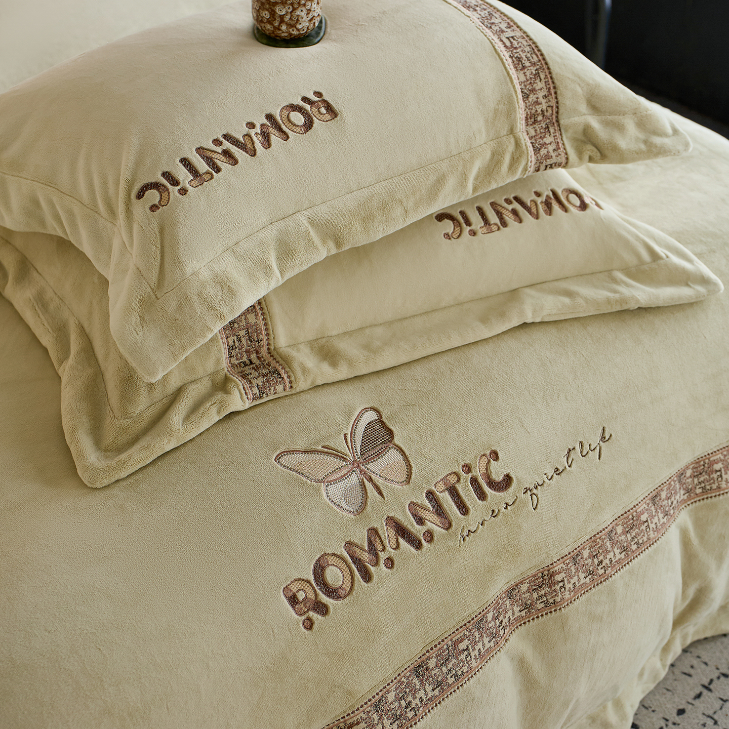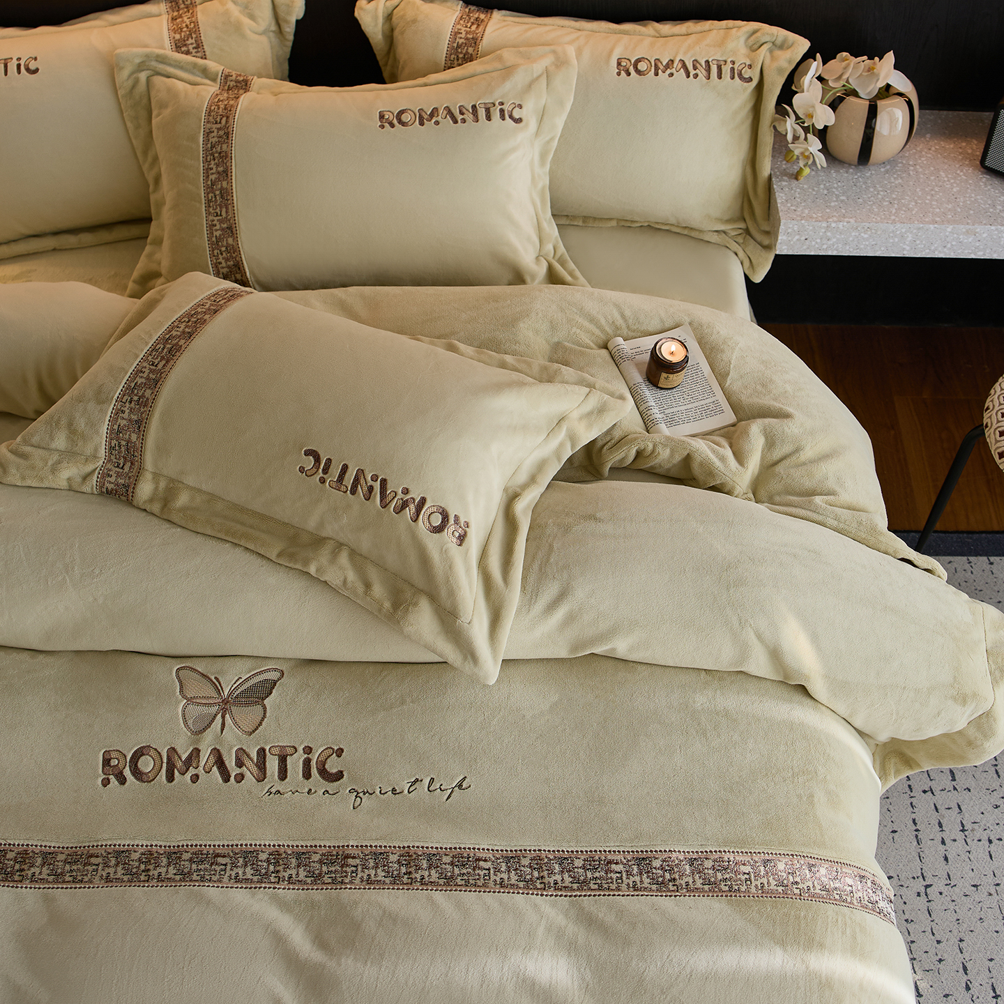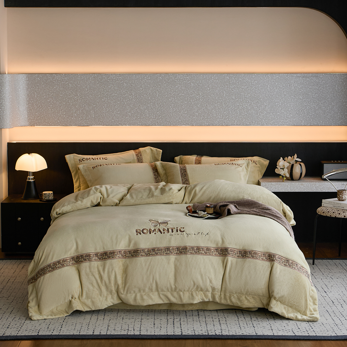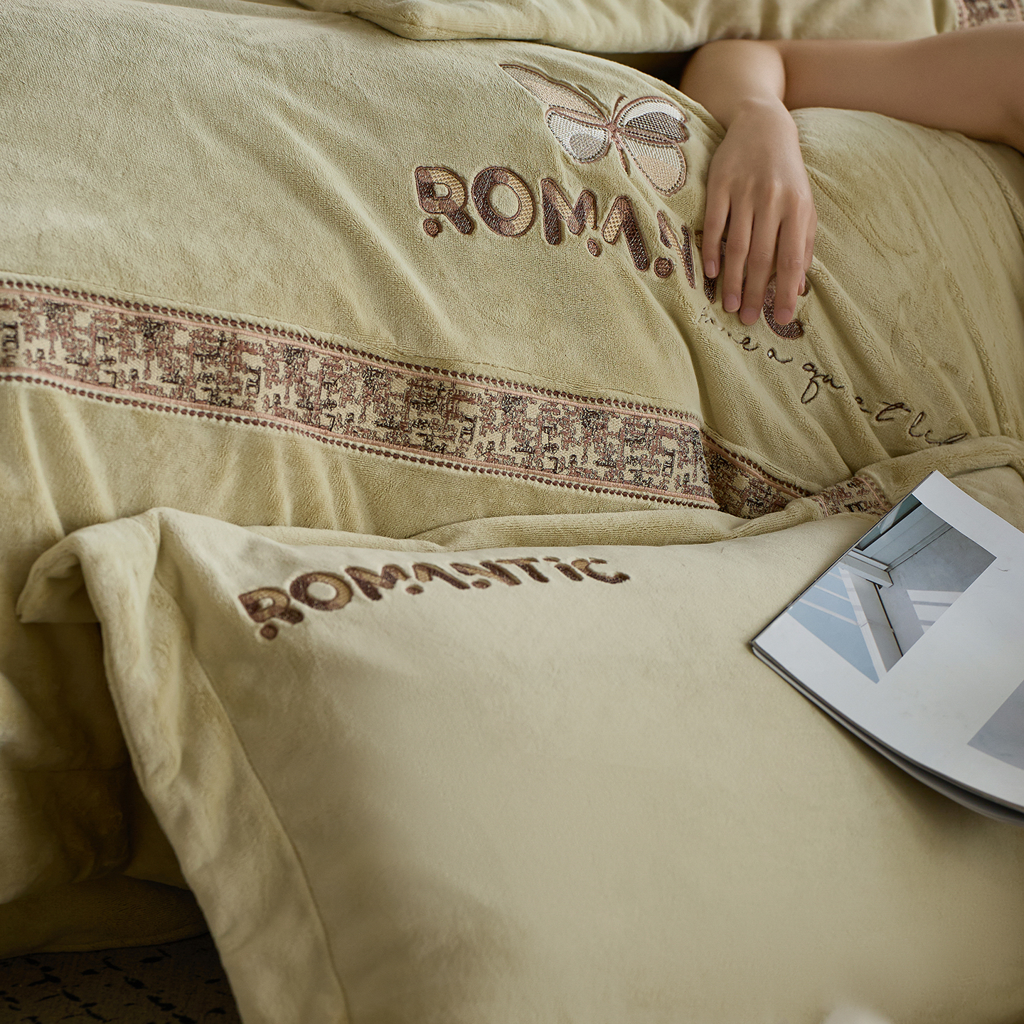 蓝梦 2025新款直播爆款270克全消光牛奶绒系列四件套-克罗地亚 浅绿