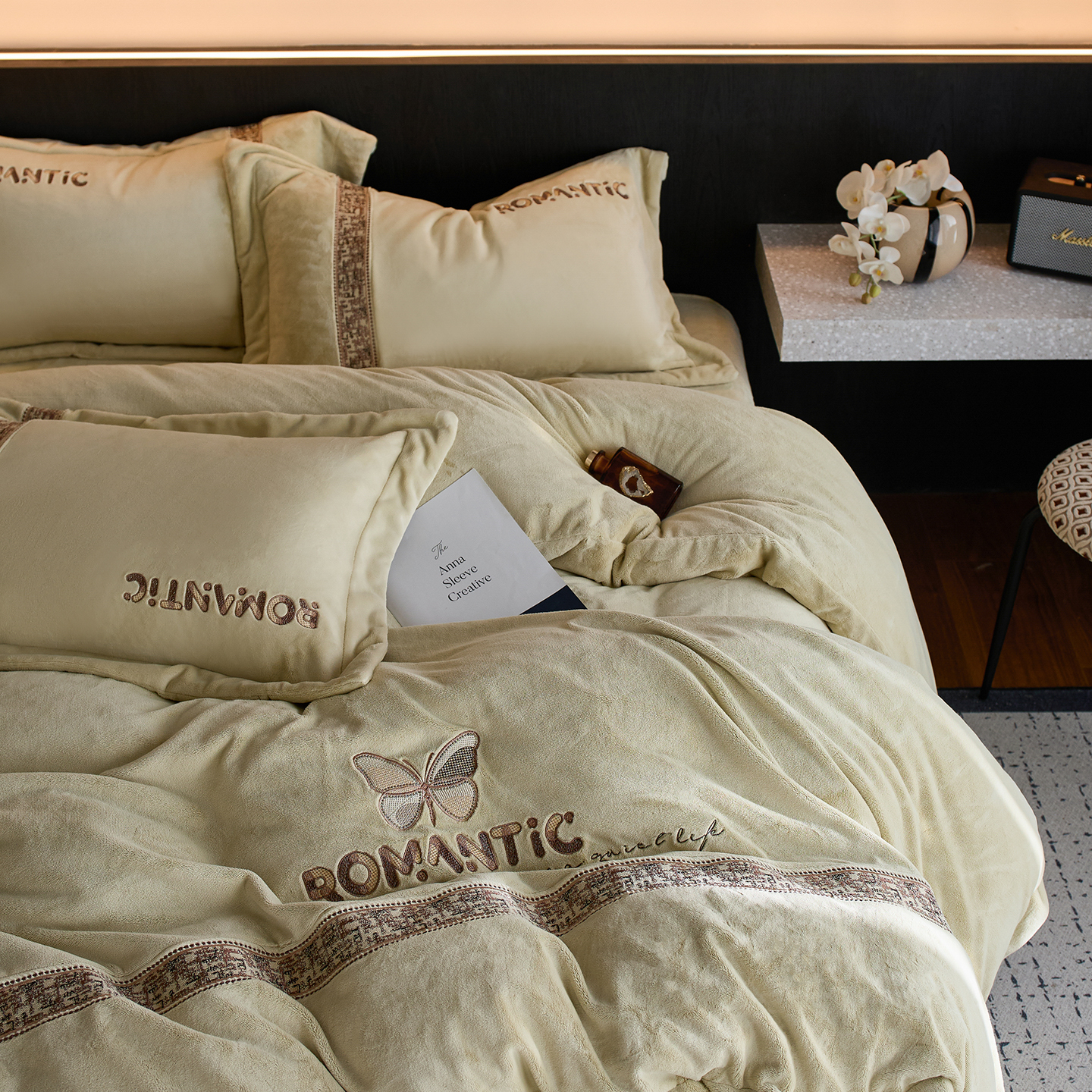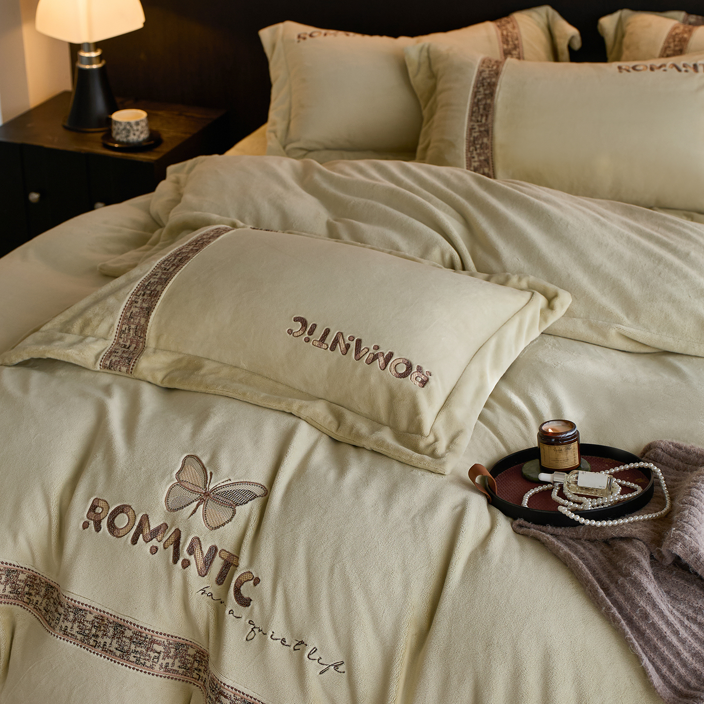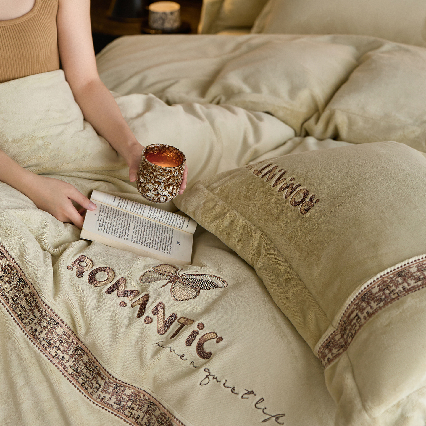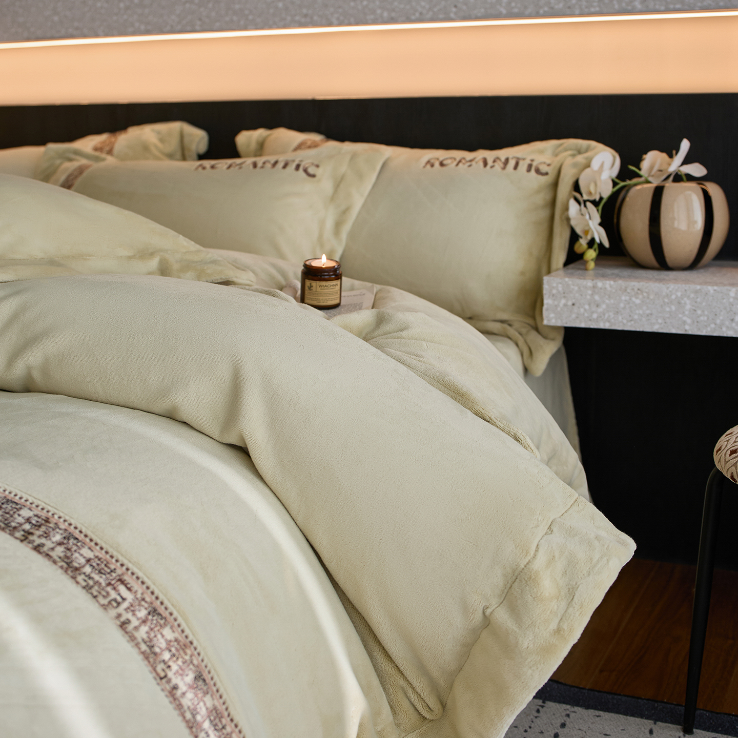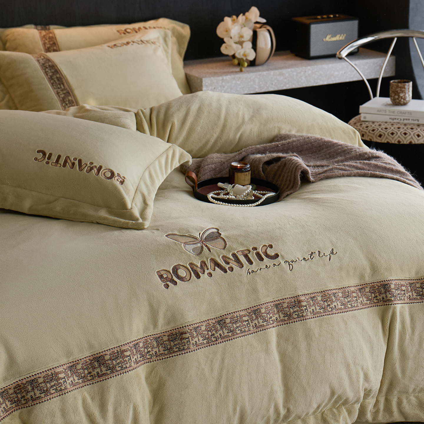 蓝梦 2025新款直播爆款270克全消光牛奶绒系列四件套-克罗地亚 浅绿