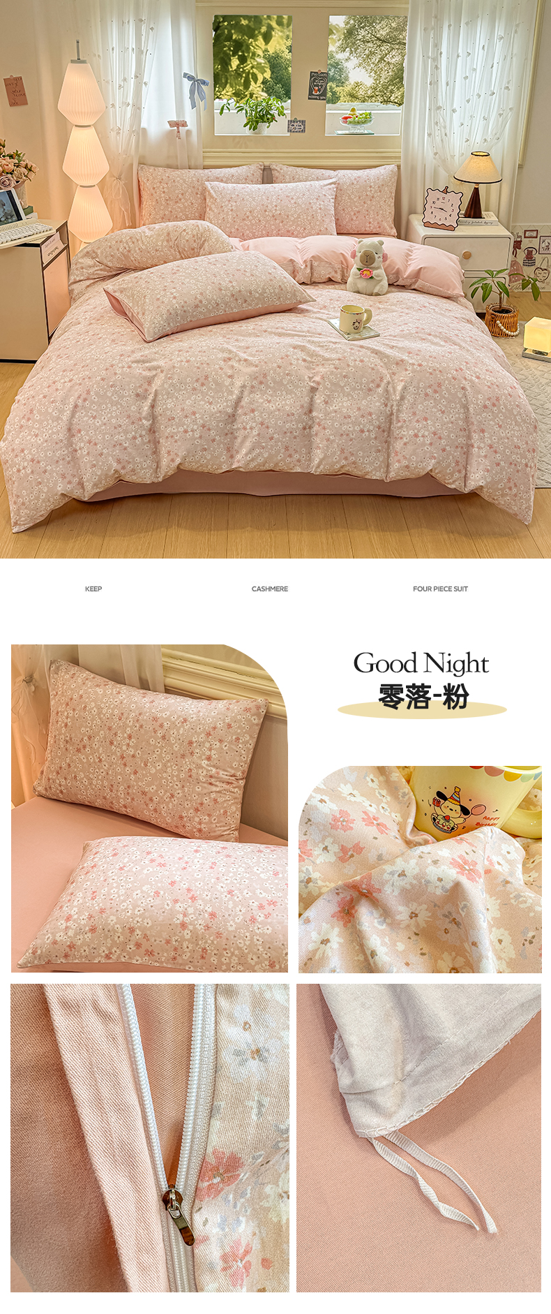 当前位置: 91家纺网 > 商品网购 > 床品套件 > 四件套 > 全棉普通四件套 > 灰鲸 2025新款A类全棉磨毛四件套 速律-粉