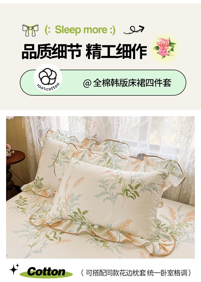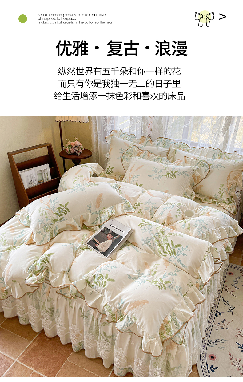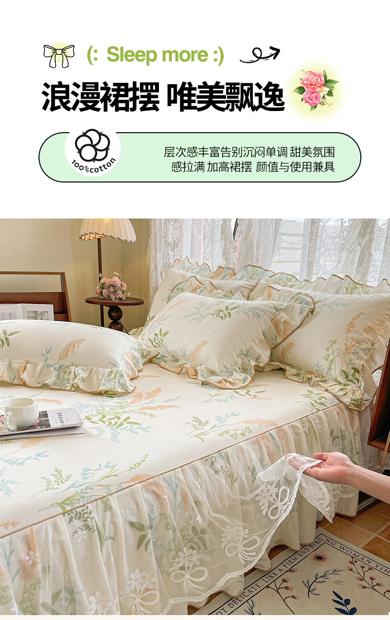 当前位置: 91家纺网 > 商品网购 > 床品套件 > 四件套 > 其它四件套 > 宜凡家纺 2025新款全棉韩版床裙四件套 粉色物语