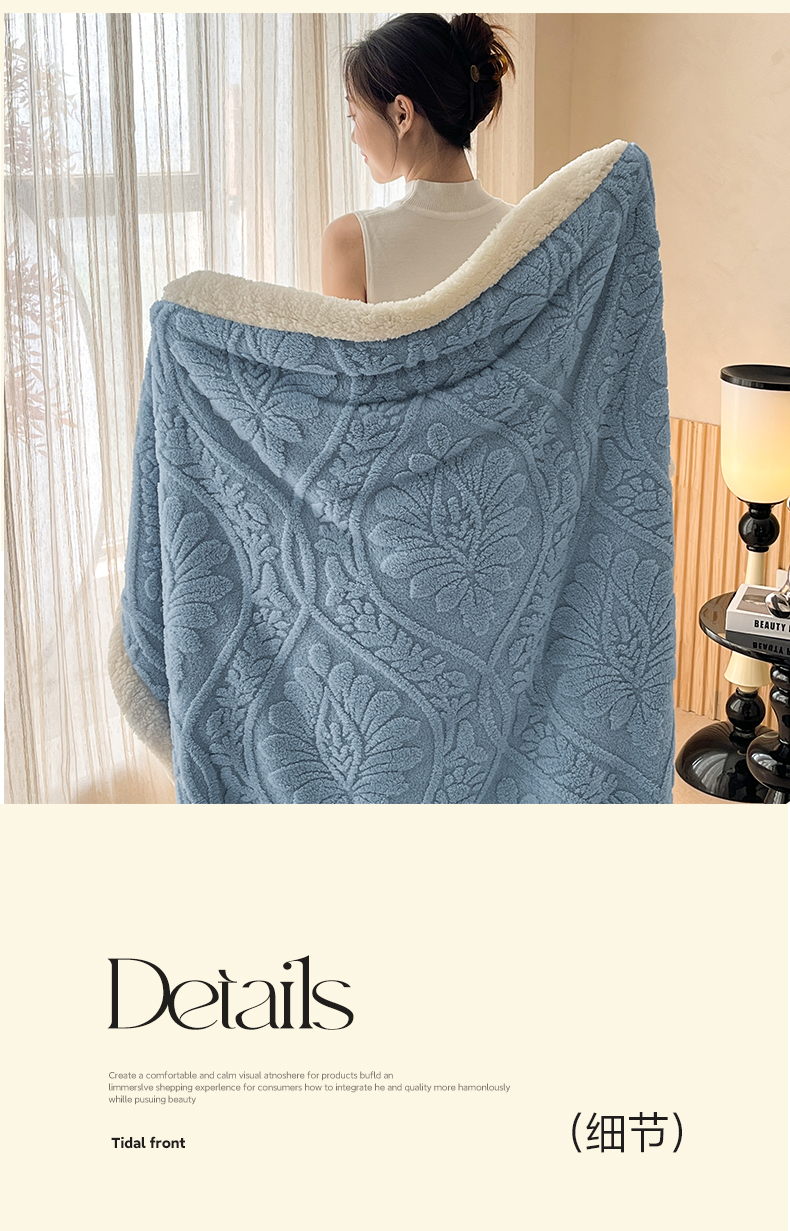 (总)莱家富 2026新款双层加厚阳离子提花毛毯羊羔绒毛毯盖毯办公室午休毯,浔彩-豆沙,浔彩-果绿,浔彩-灰色,浔彩-奶白,浔彩-天蓝,浔彩-驼色