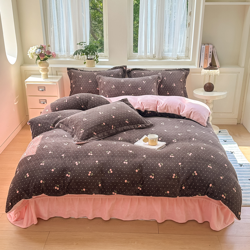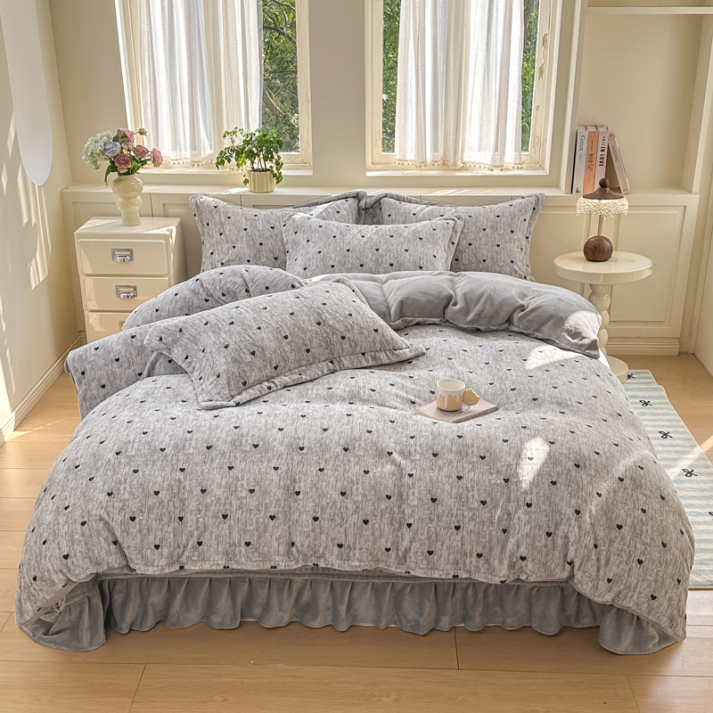 (总)欧尚 2025新款牛奶绒花边床盖四件套,粉点点,花小玉,咖色小心心,蓝点点,慕然,仙女粉,仙女紫
