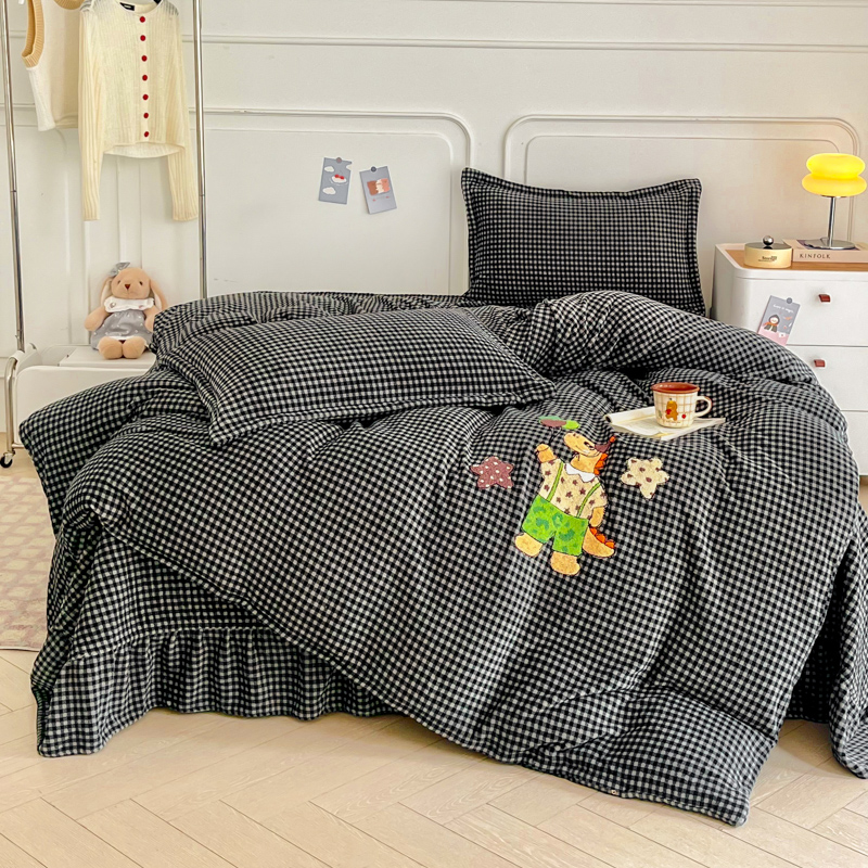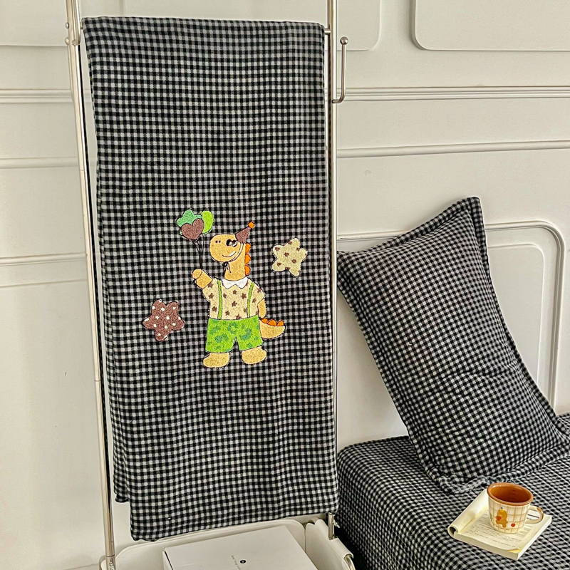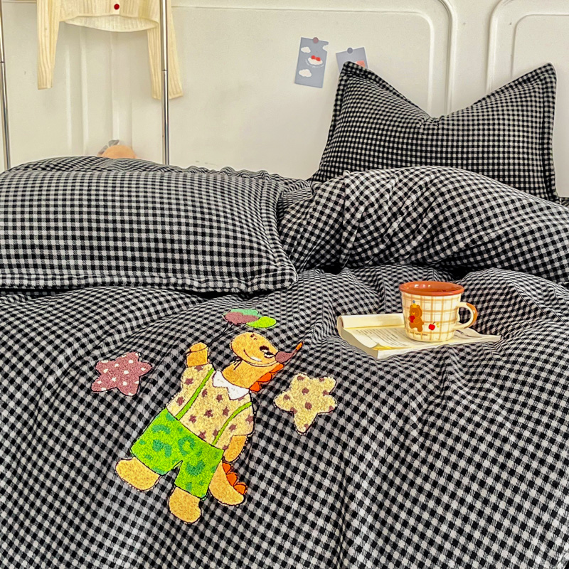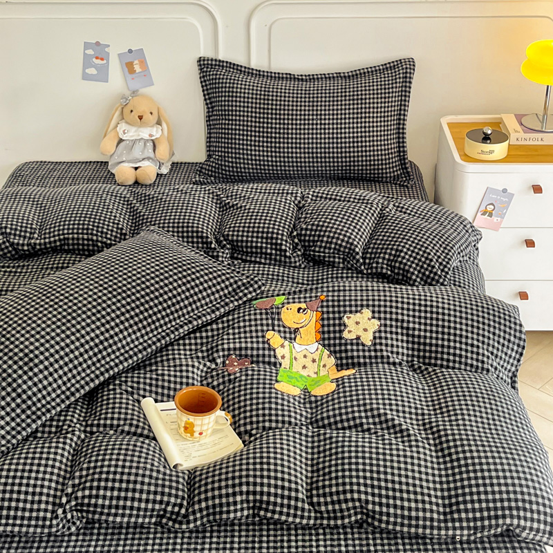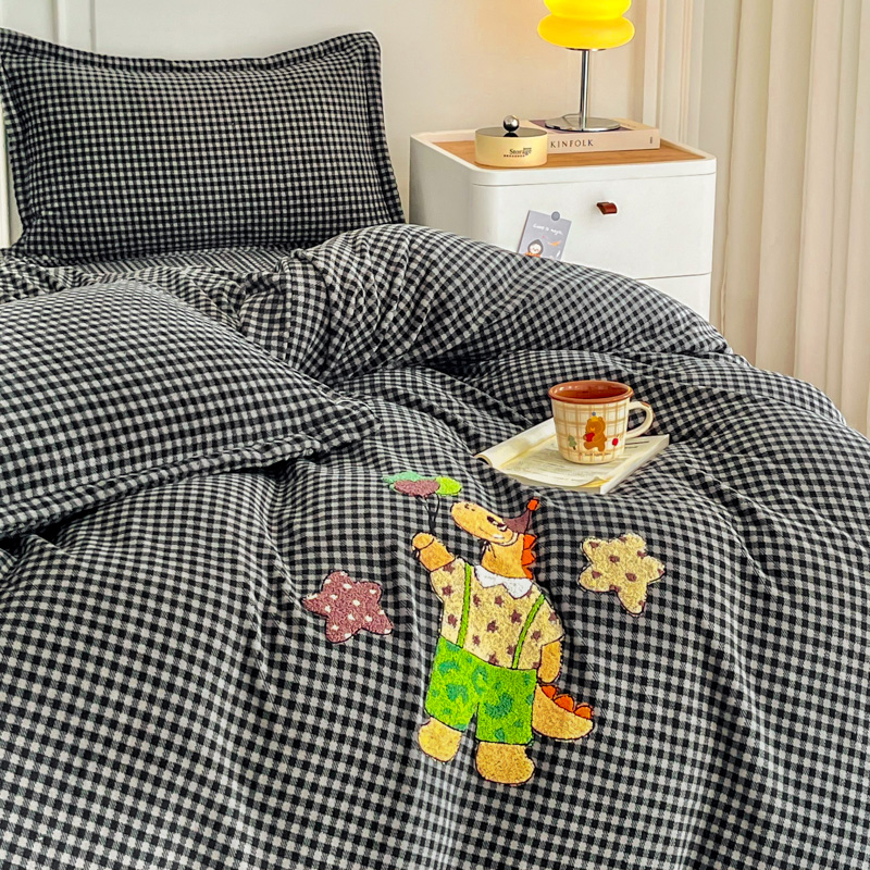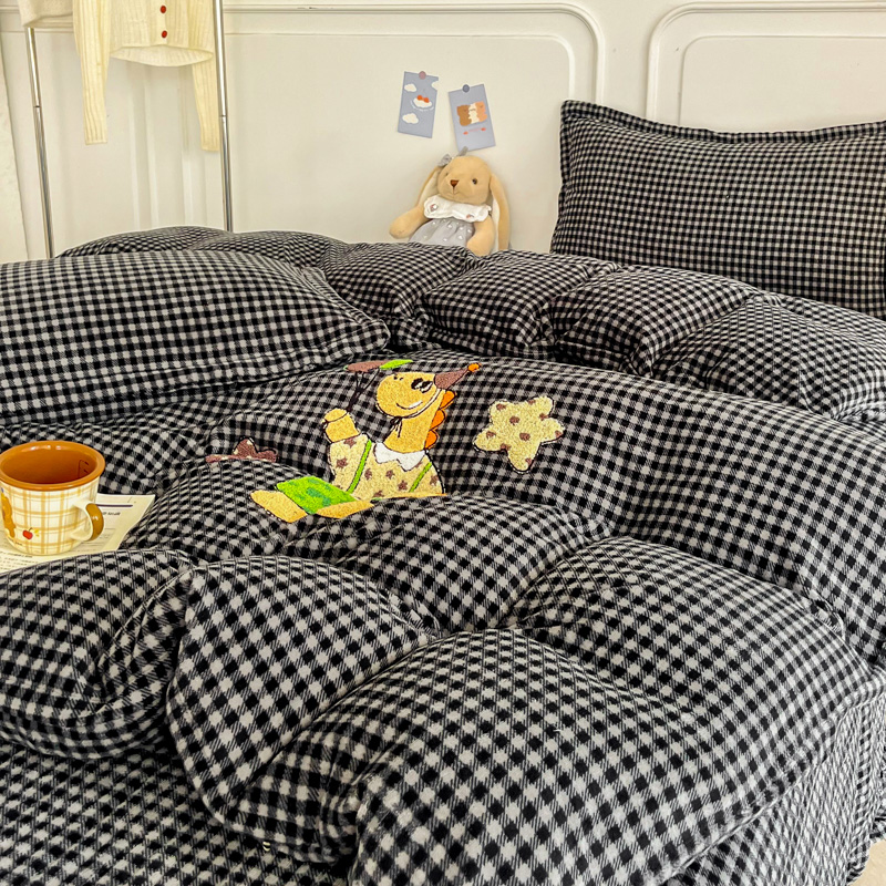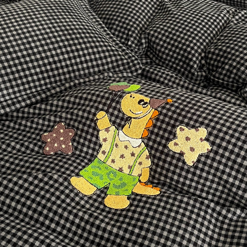 尚美 2025爆款格子系列印加绣牛奶绒床盖四件套 可爱恐龙