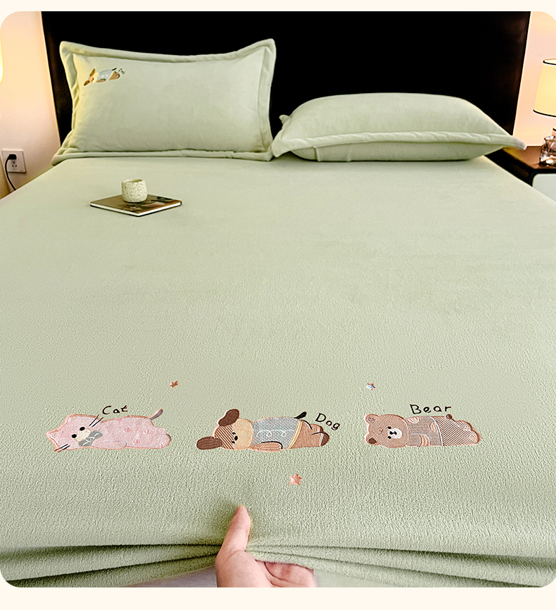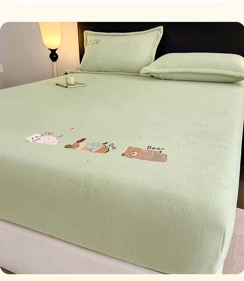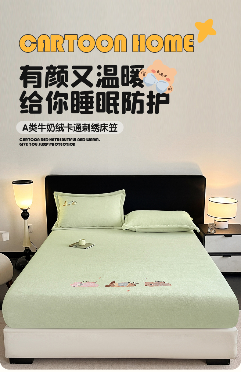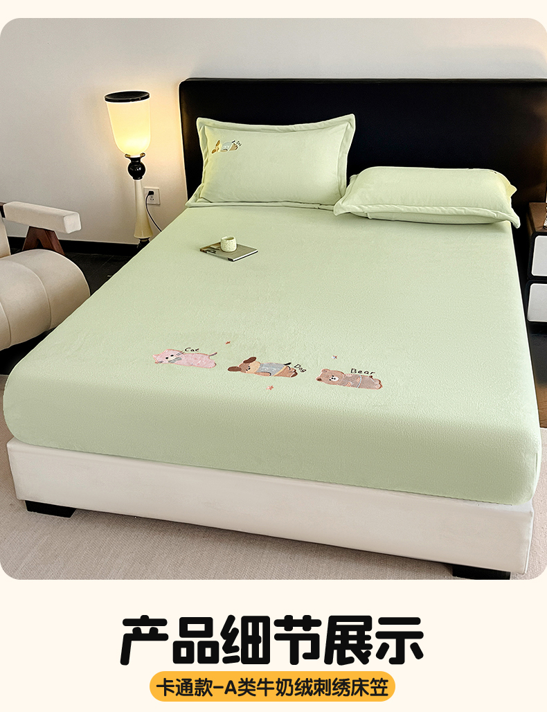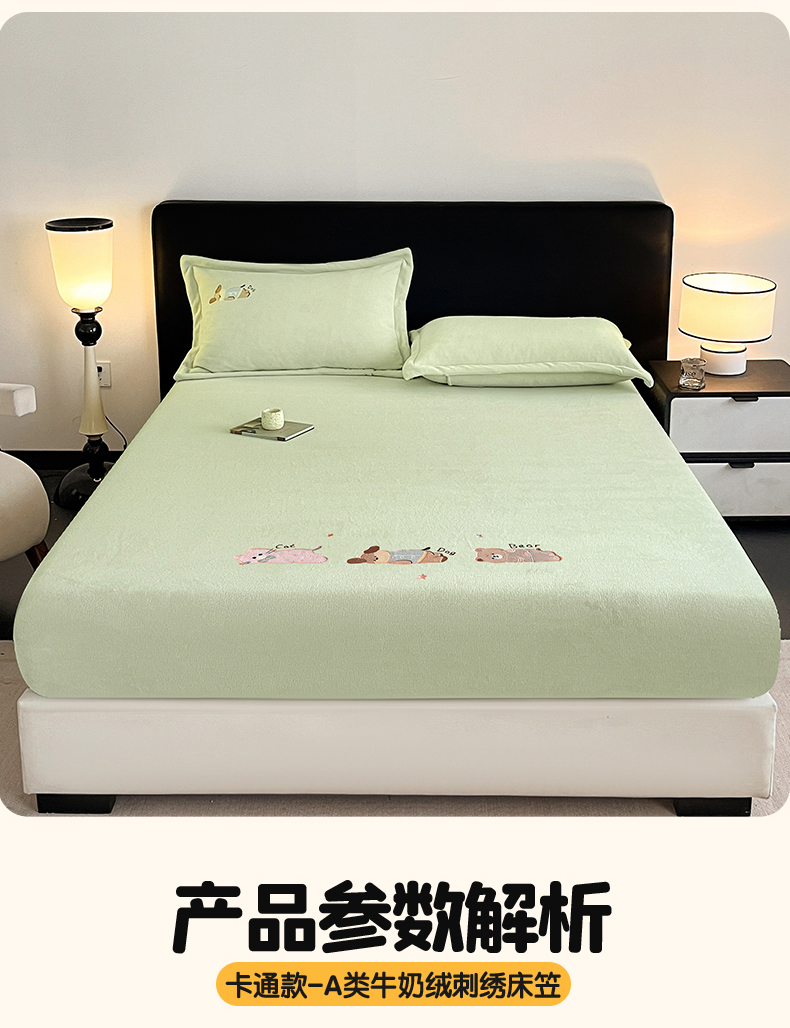 笙意家纺 2025新款A类牛奶绒海獭绒卡通刺绣床笠 卡通-叶绿
