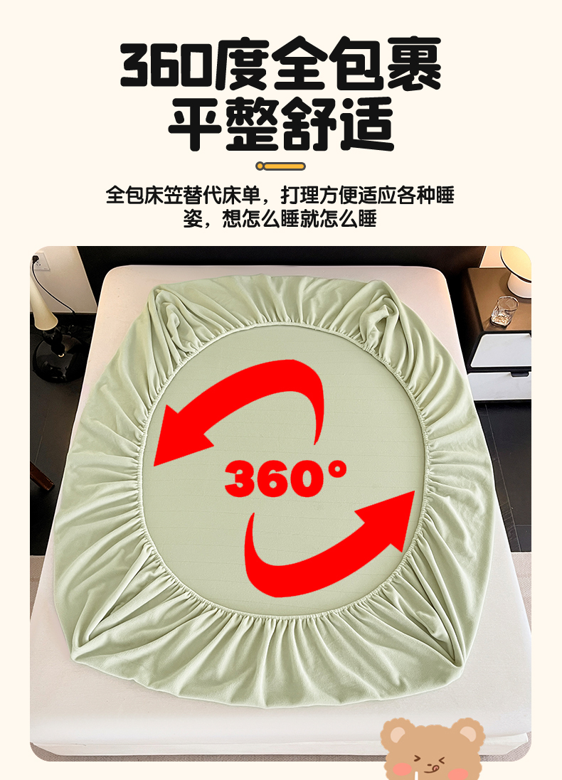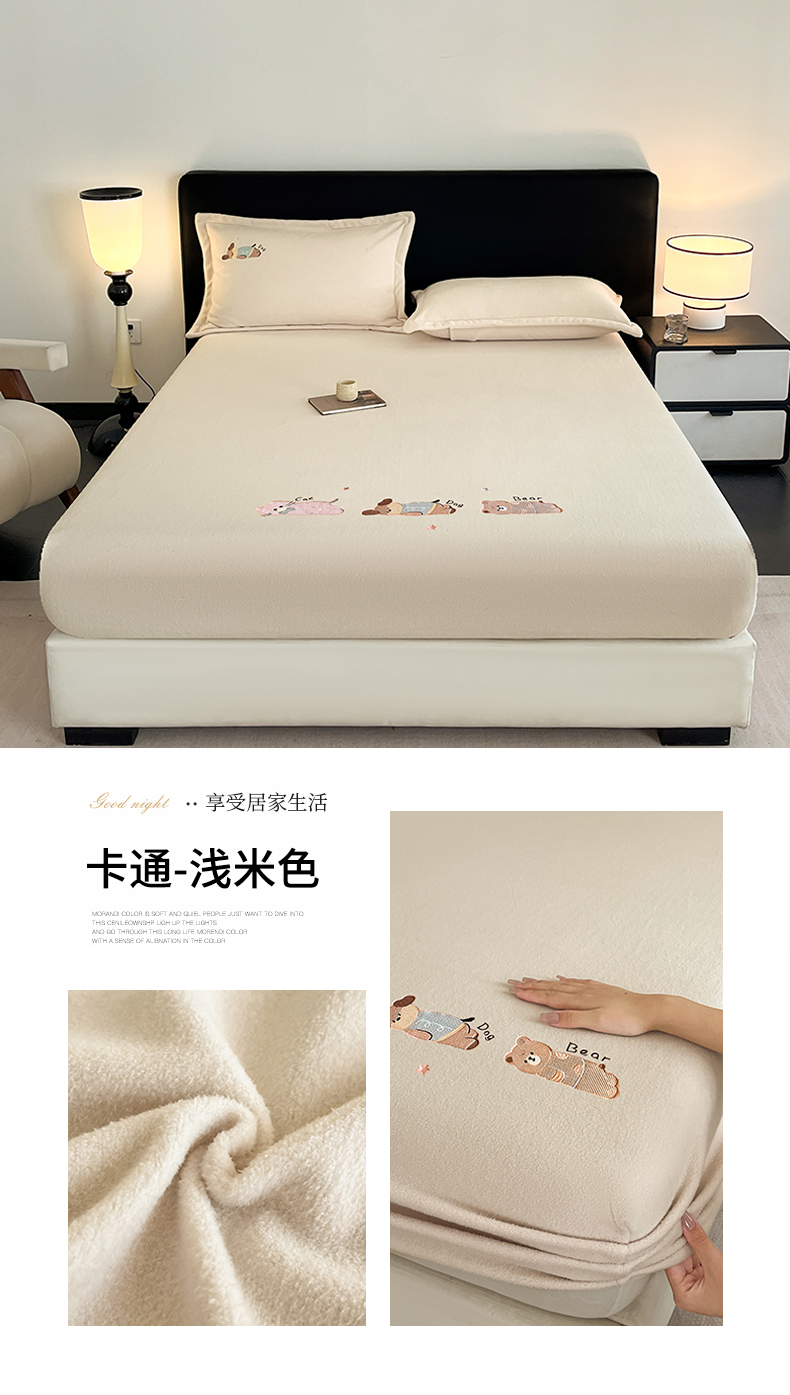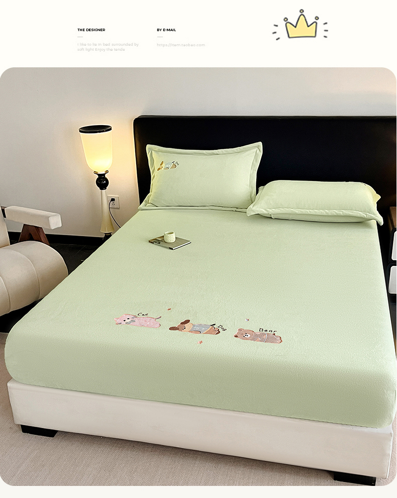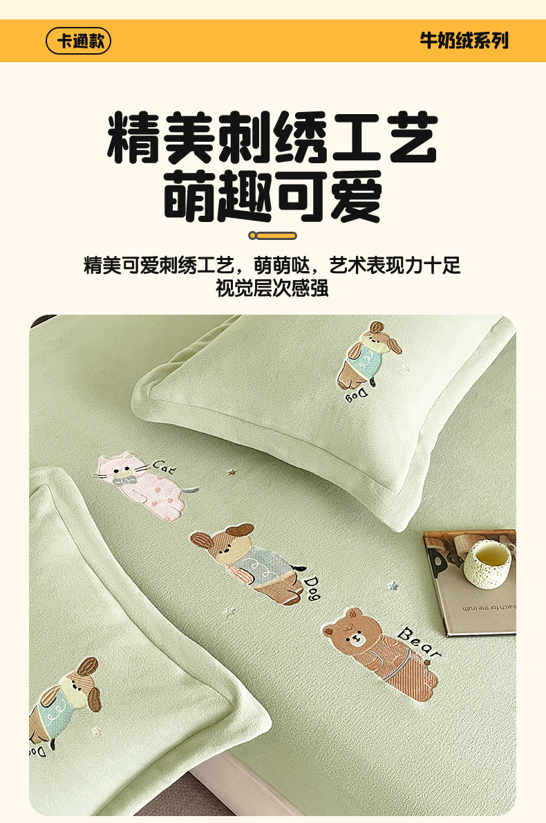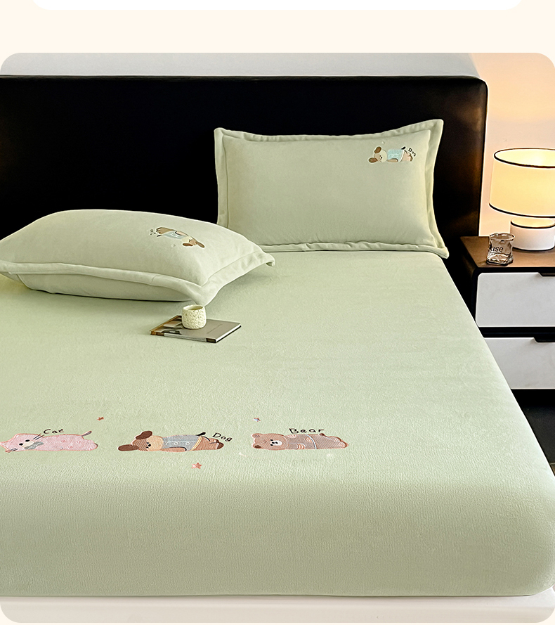 笙意家纺 2025新款A类牛奶绒海獭绒卡通刺绣床笠 卡通-叶绿