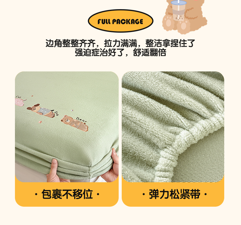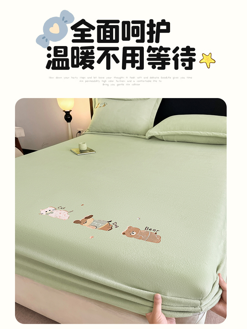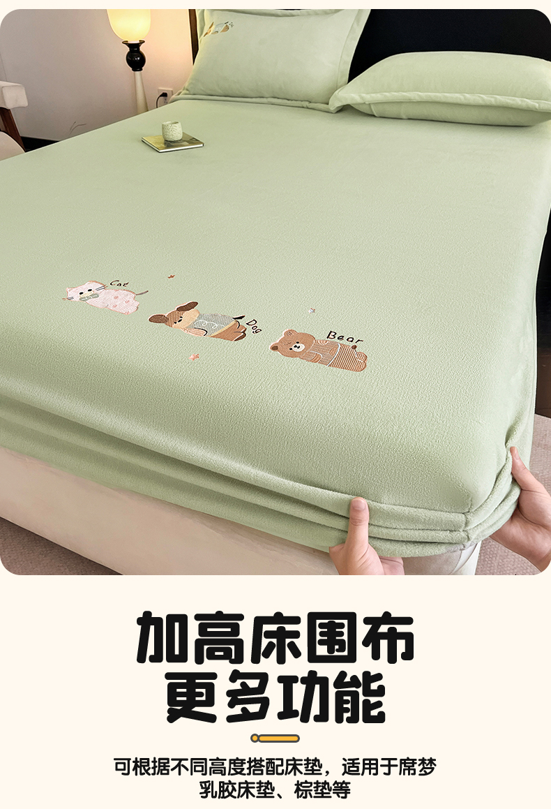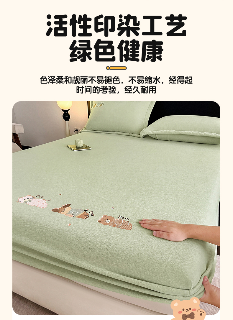 商品名称:笙意家纺 2025新款A类牛奶绒海獭绒卡通刺绣床笠 卡通-叶绿