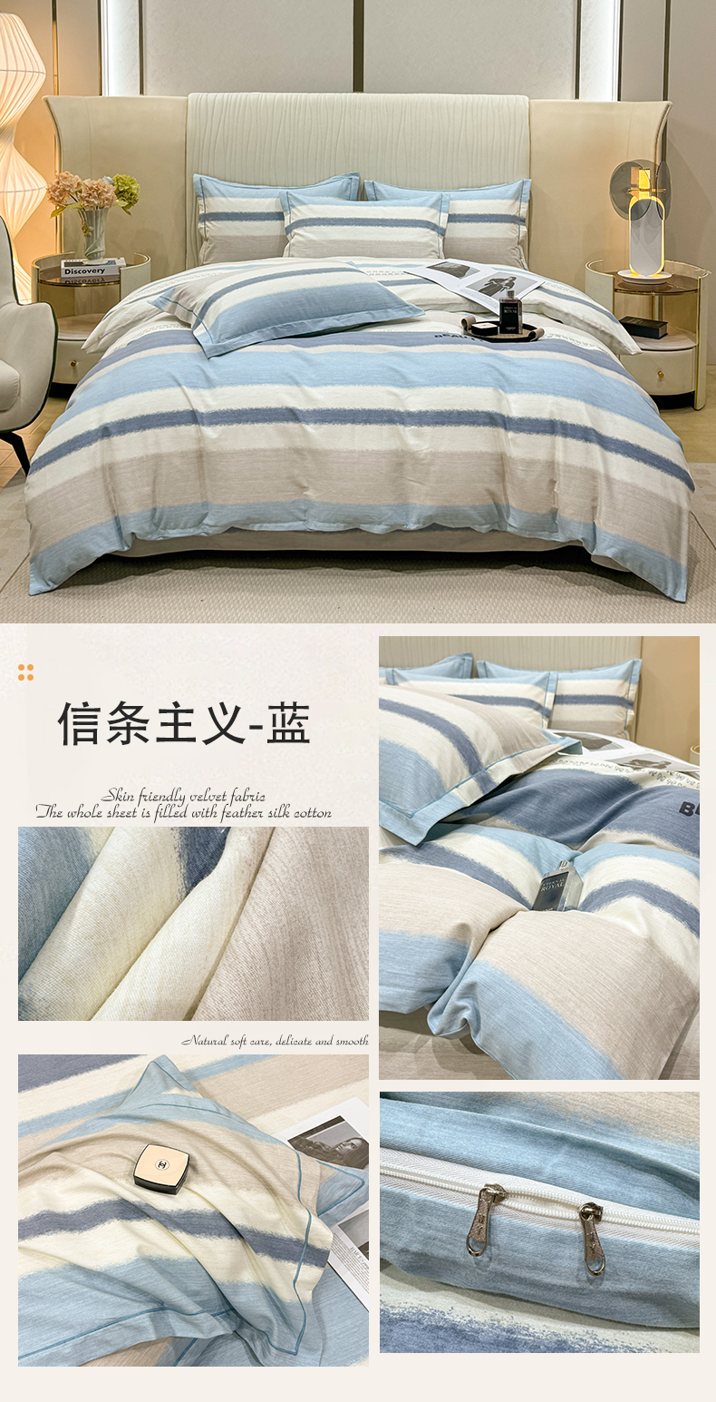 当前位置: 91家纺网 > 商品网购 > 床品套件 > 四件套 > 全棉普通四件套 > 木易家居 2026新款100%全棉纯棉加厚四件套(礼盒包装)(提供买家秀)信条主义-蓝