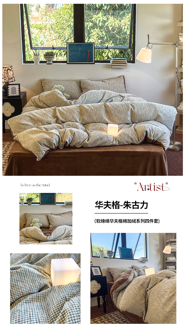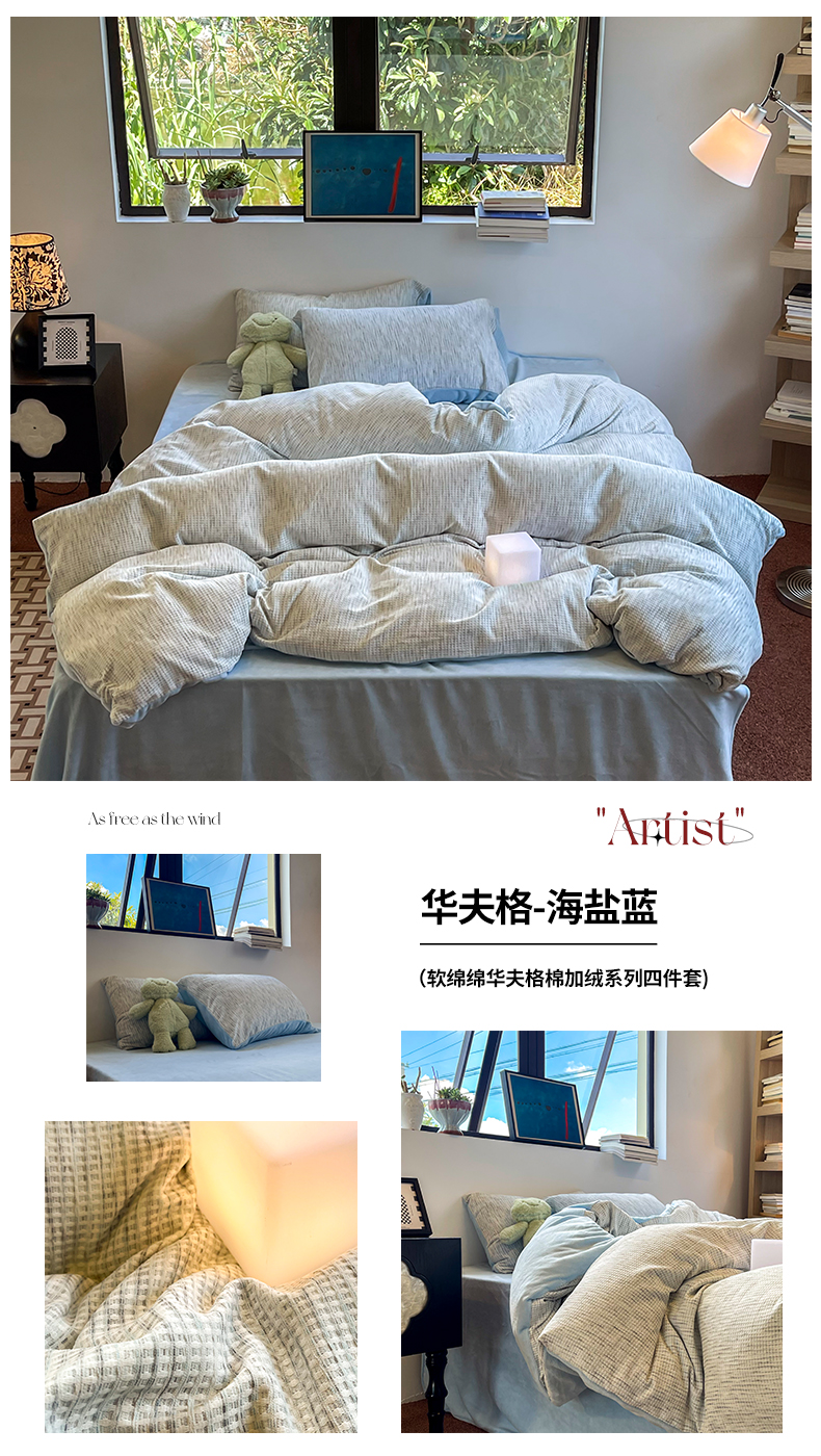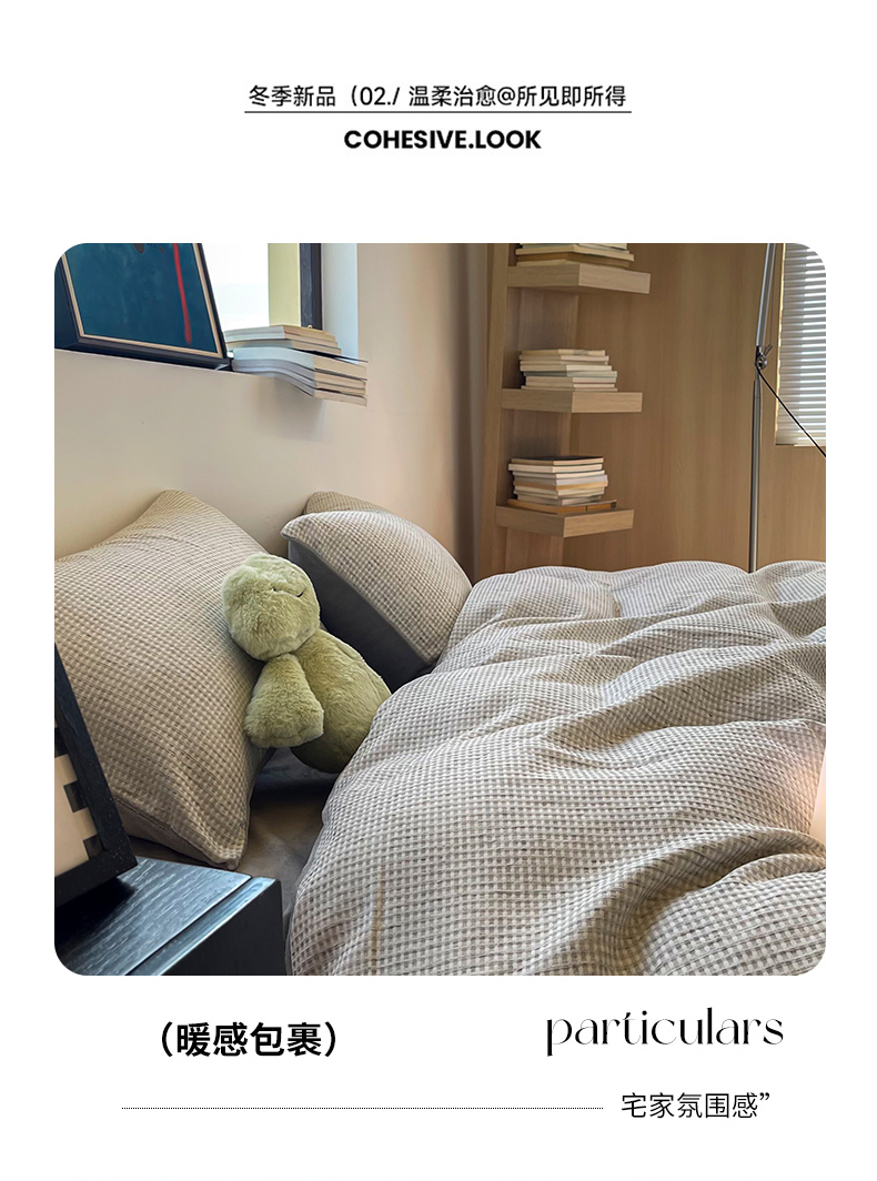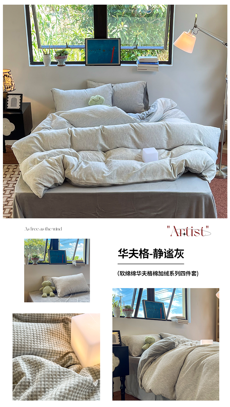 当前位置: 91家纺网 > 商品网购 > 床品套件 > 四件套 > 全棉普通四件套 > 捌月 2025冬季新款软绵绵华夫格棉加绒系列四件套 华夫格-静谧灰