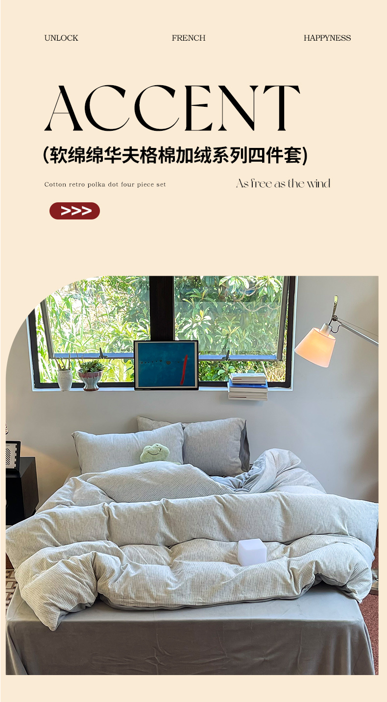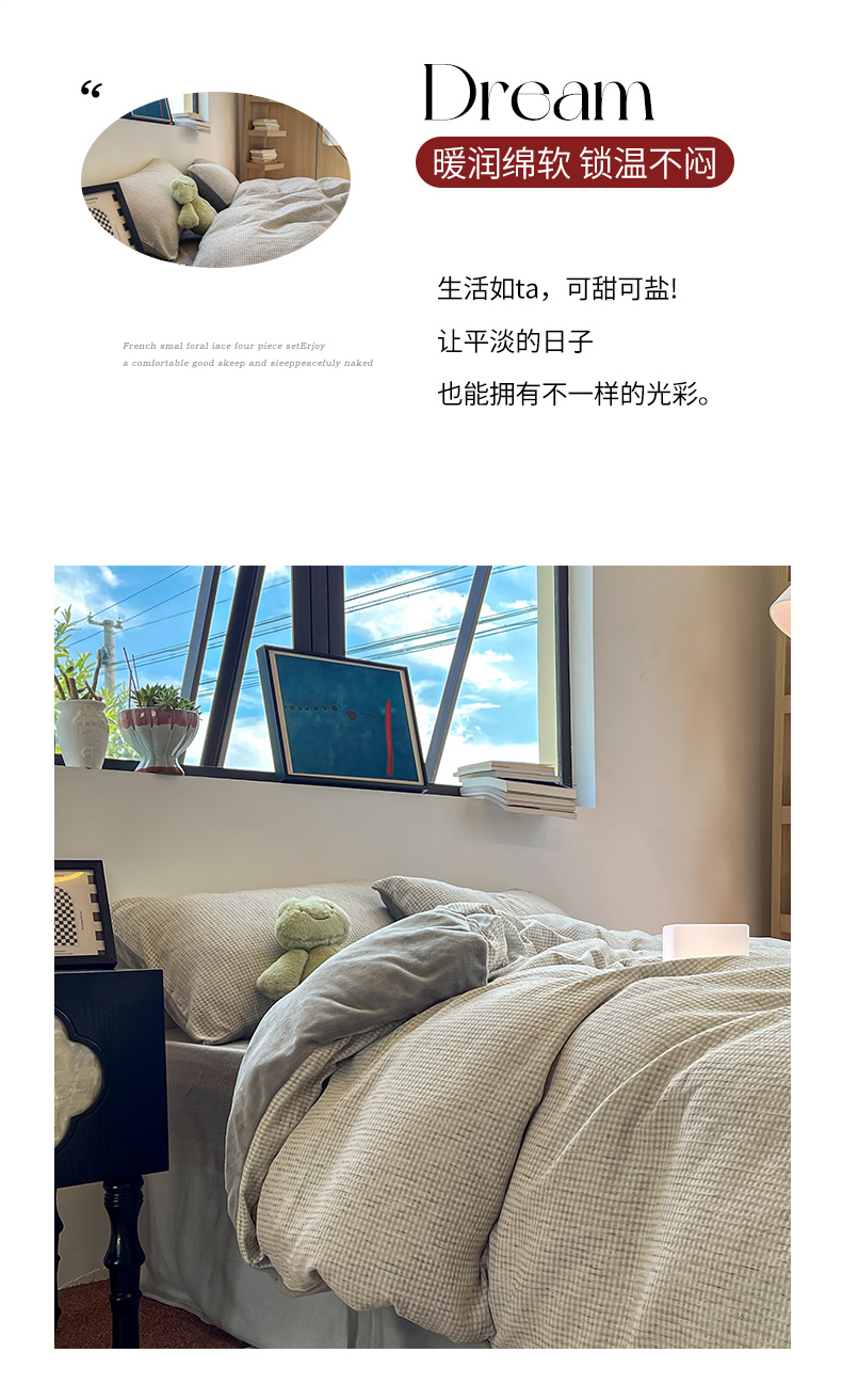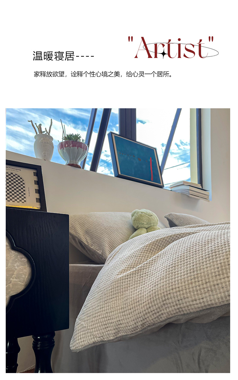 当前位置: 91家纺网 > 商品网购 > 床品套件 > 四件套 > 全棉普通四件套 > 捌月 2025冬季新款软绵绵华夫格棉加绒系列四件套 华夫格-静谧灰