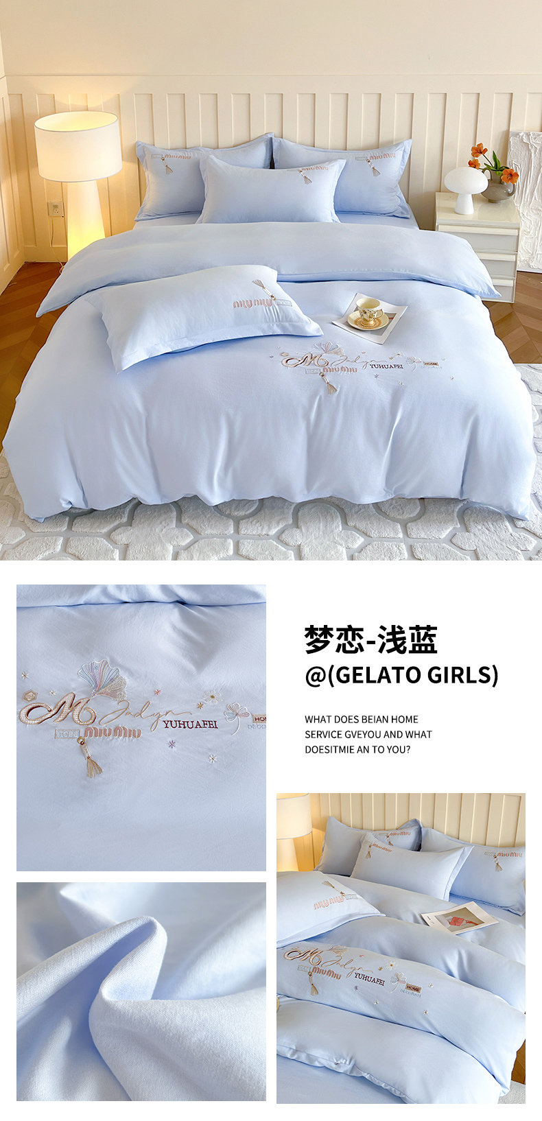 (总)文黛家居 2025新款高克重水洗棉绣花四件套-梦恋,梦恋-粉,梦恋-灰,梦恋-果绿,梦恋-浅蓝,梦恋-紫