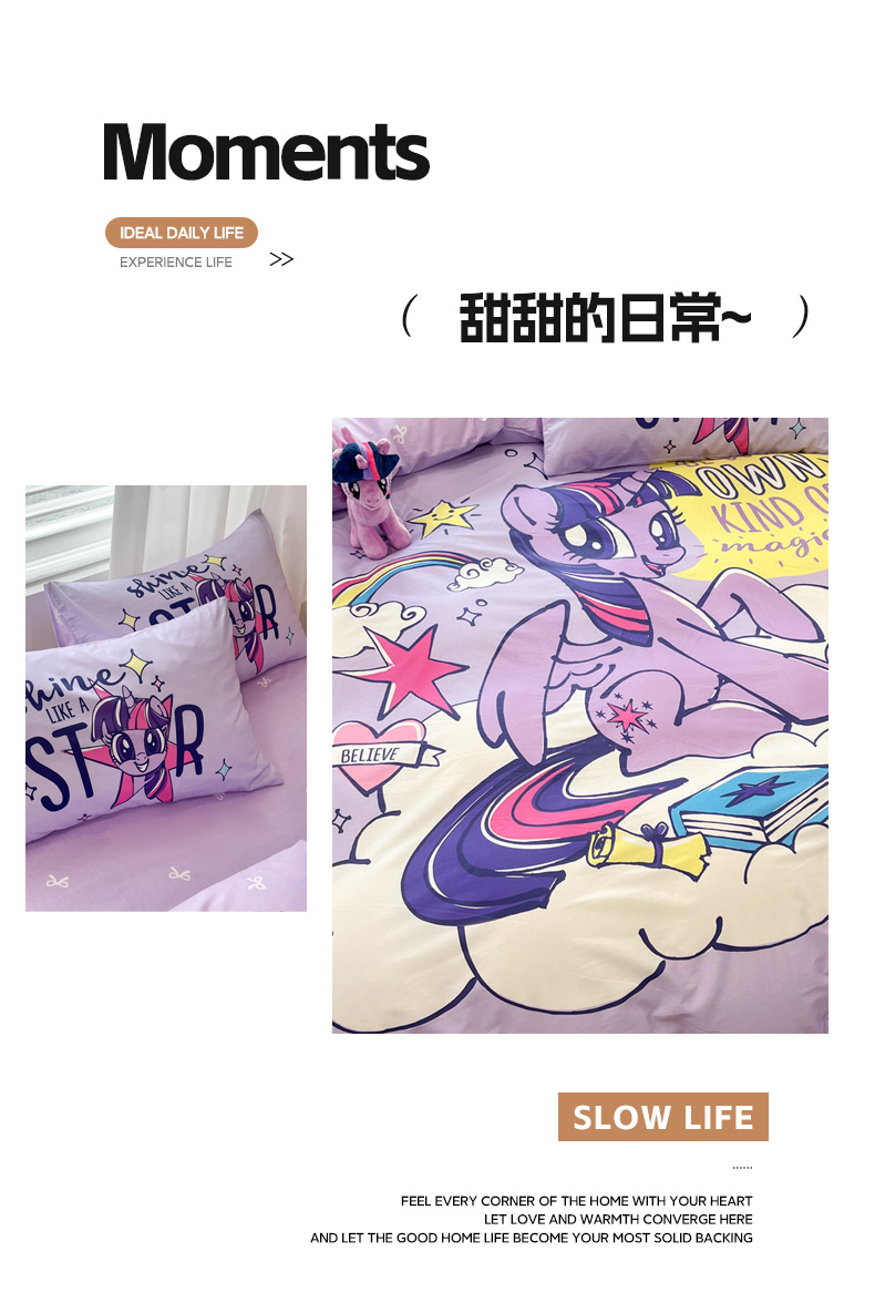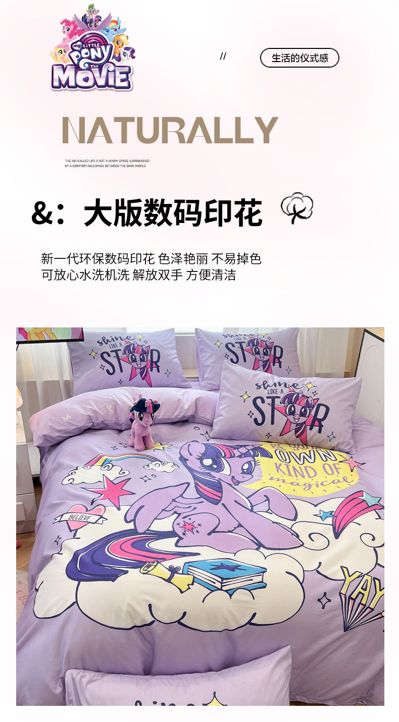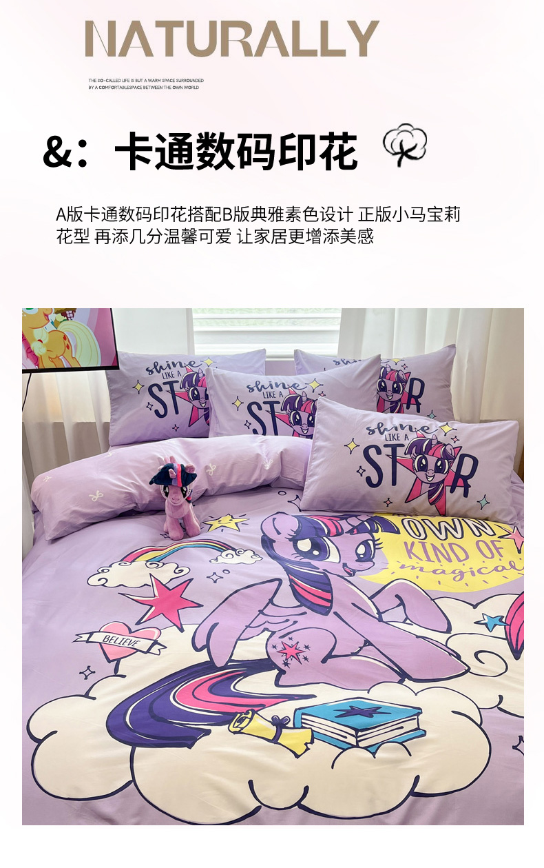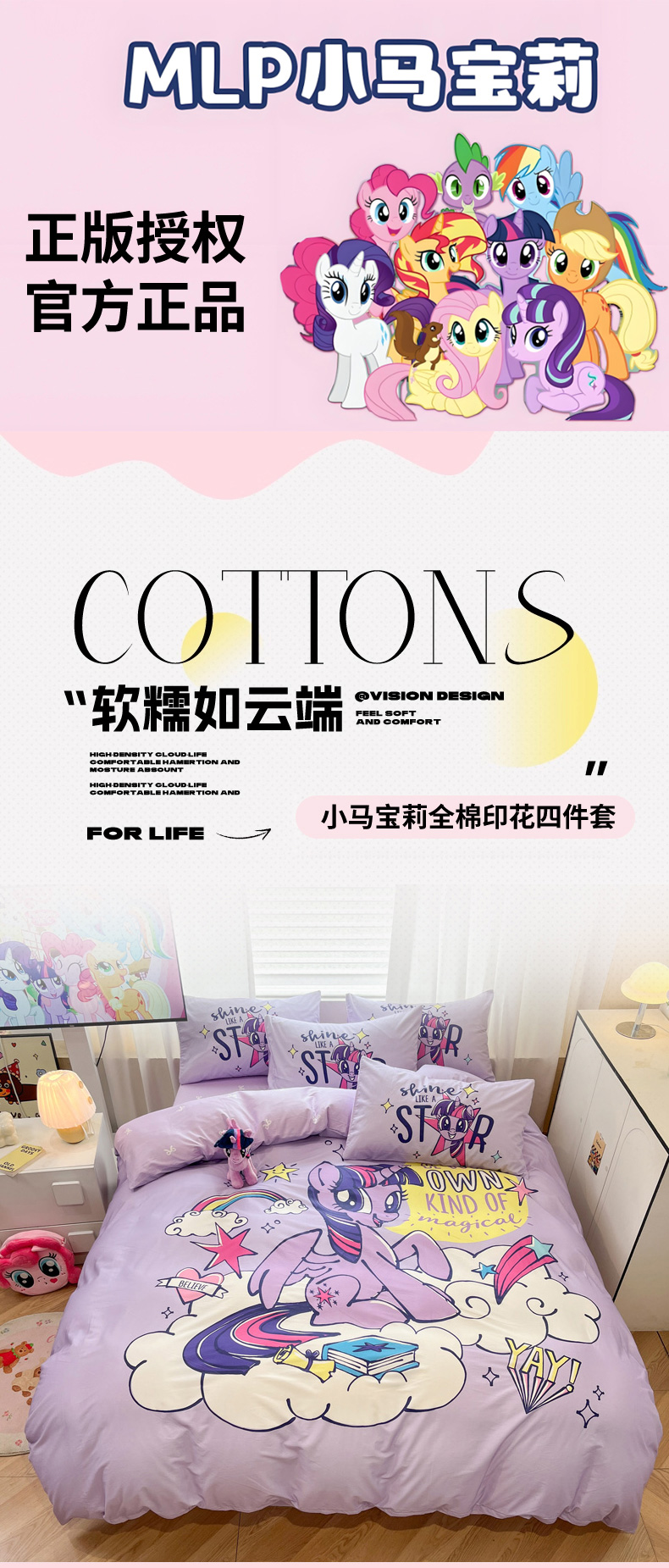 当前位置: 91家纺网 > 商品网购 > 床品套件 > 四件套 > 全棉普通四件套 > 暮思家居 2025新款正版授权小马宝莉大版全棉数码印花纯棉四件套 大版-梦幻紫悦