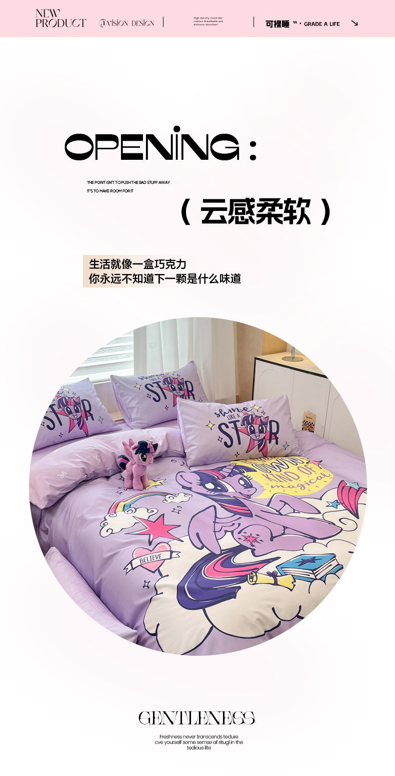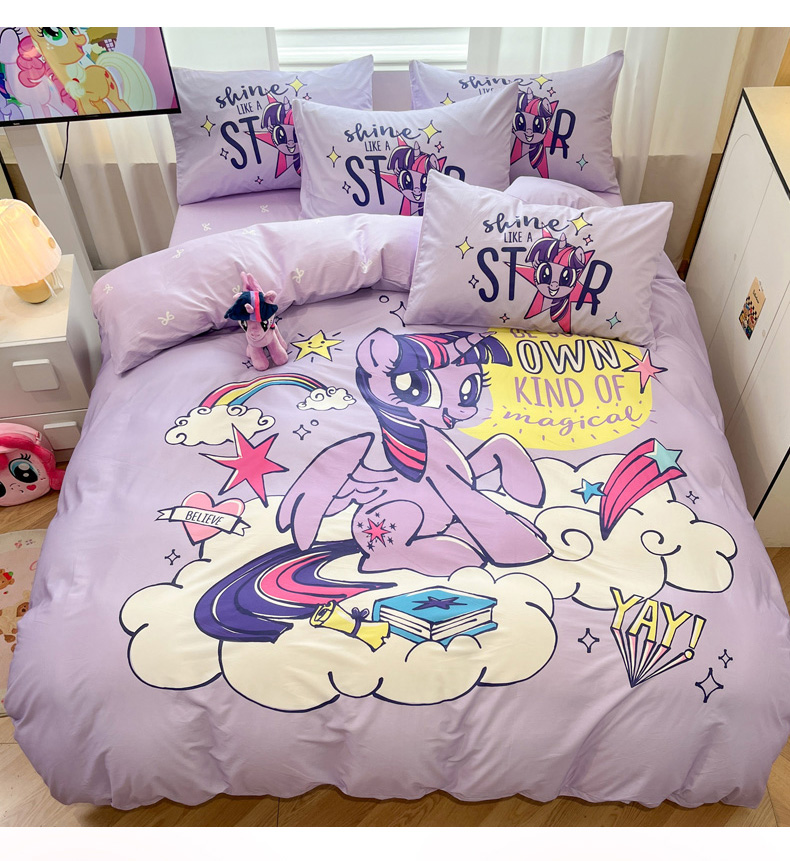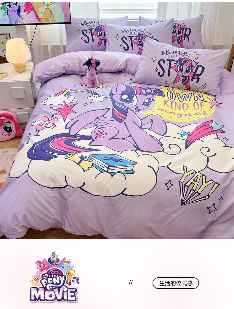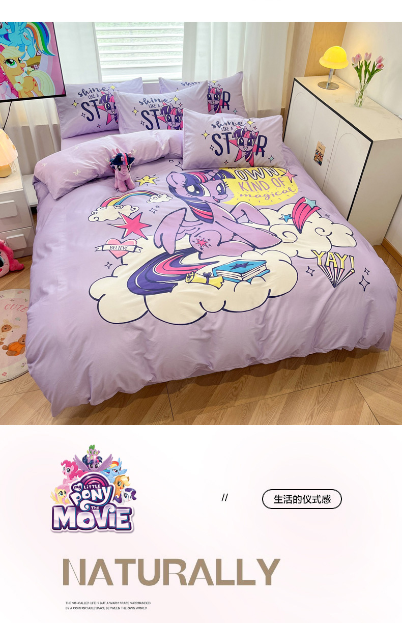 当前位置: 91家纺网 > 商品网购 > 床品套件 > 四件套 > 全棉普通四件套 > 暮思家居 2025新款正版授权小马宝莉大版全棉数码印花纯棉四件套 大版-梦幻紫悦