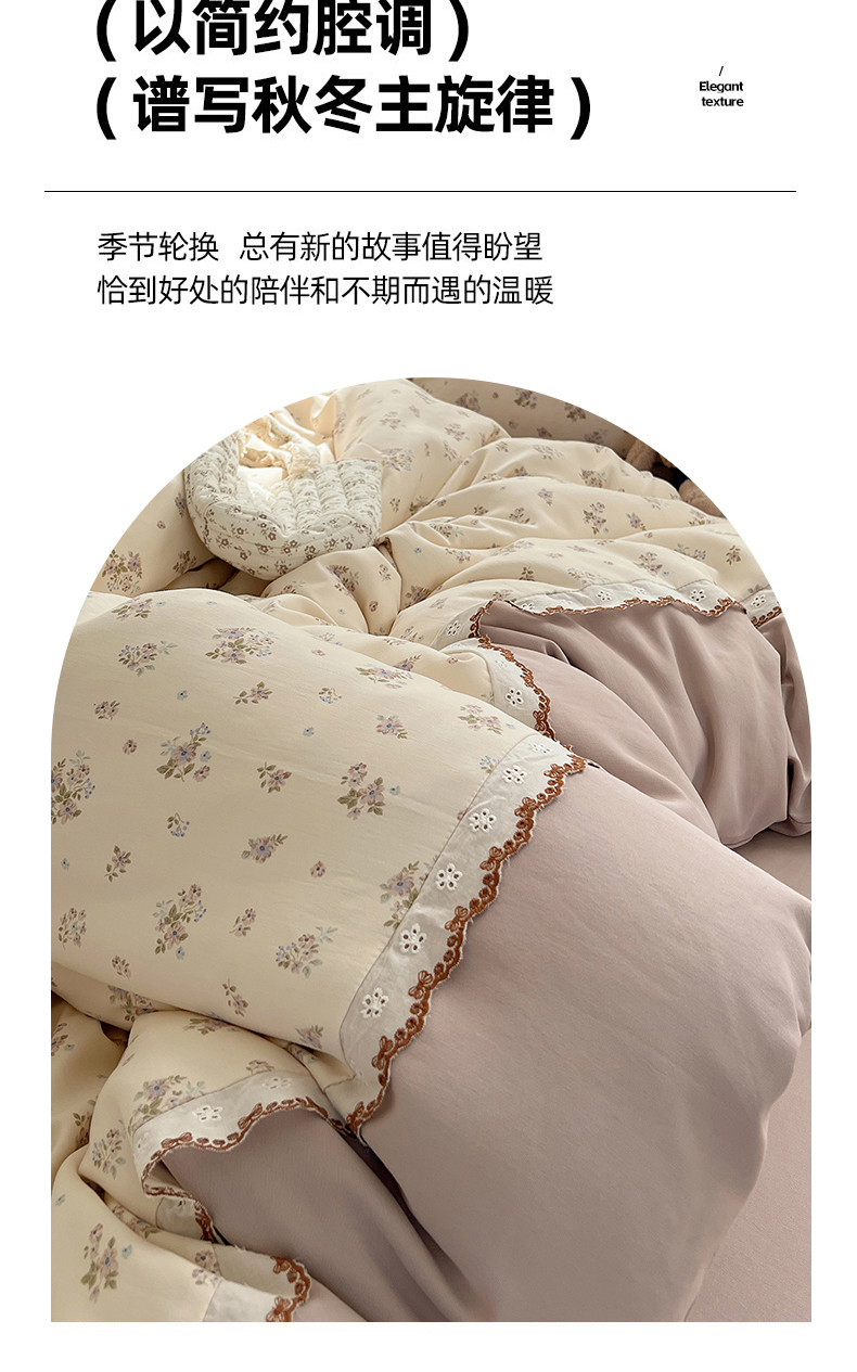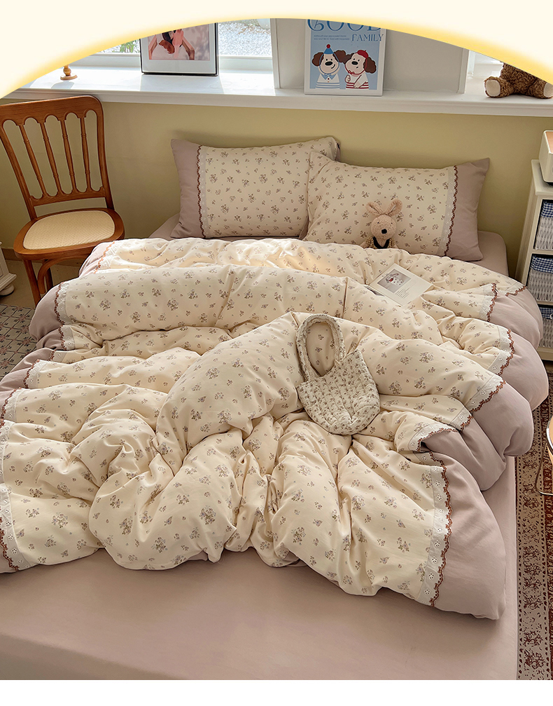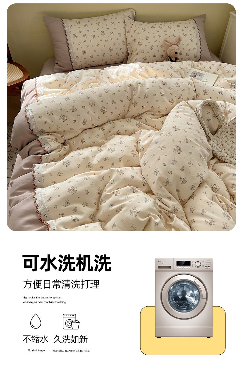 当前位置: 91家纺网 > 商品网购 > 床品套件 > 四件套 > 全棉普通四件套 > 优选 2025秋冬新品韩国小清新有氧提花人字纹双层纱全棉蕾丝花边加厚四件套 栀子花信-小花边