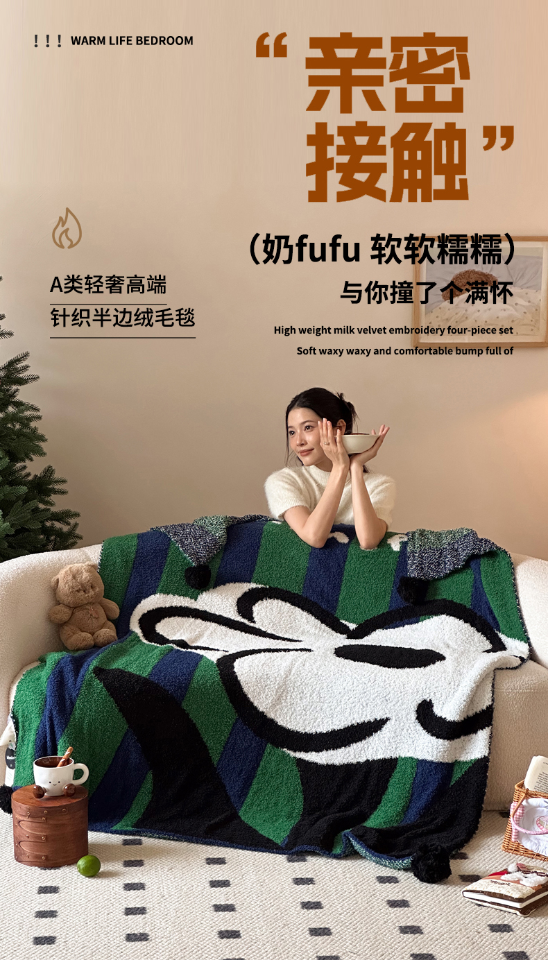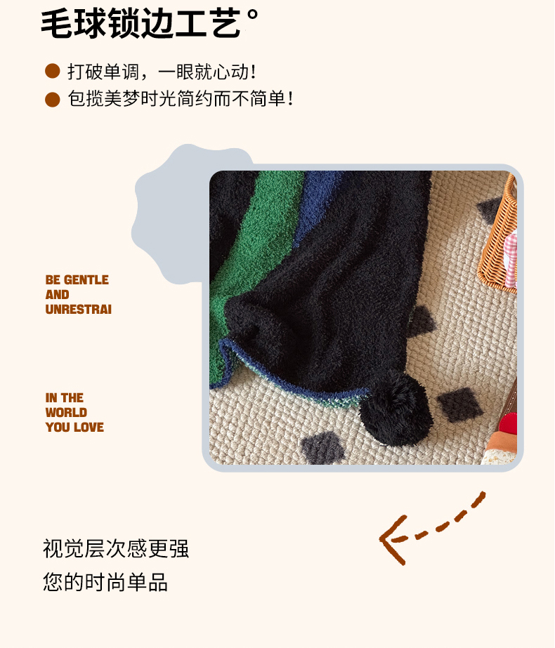 当前位置: 91家纺网 > 商品网购 > 毛毯休闲毯绒毯 > 毛毯 > Sweet dreams甜梦 2025新款轻奢高端毛球款半边绒针织毛毯 条纹花朵