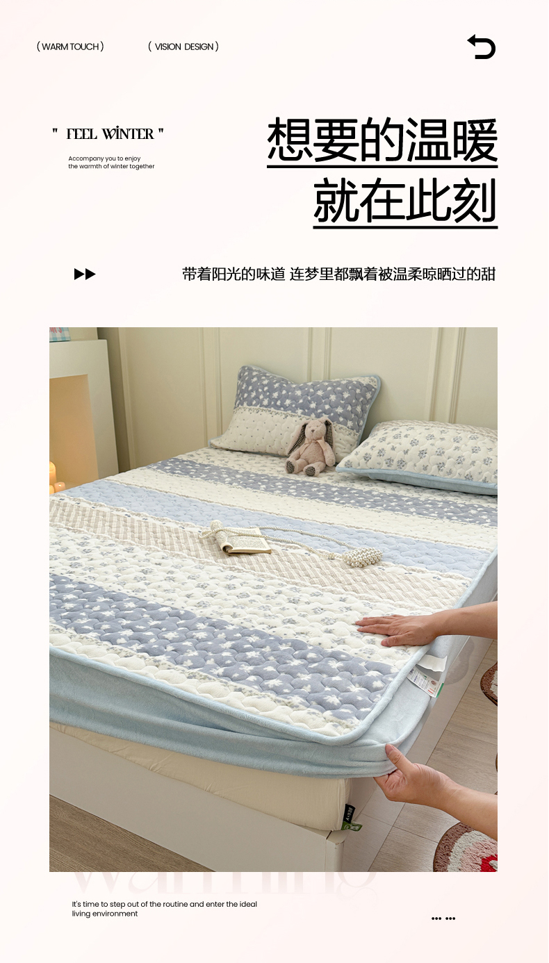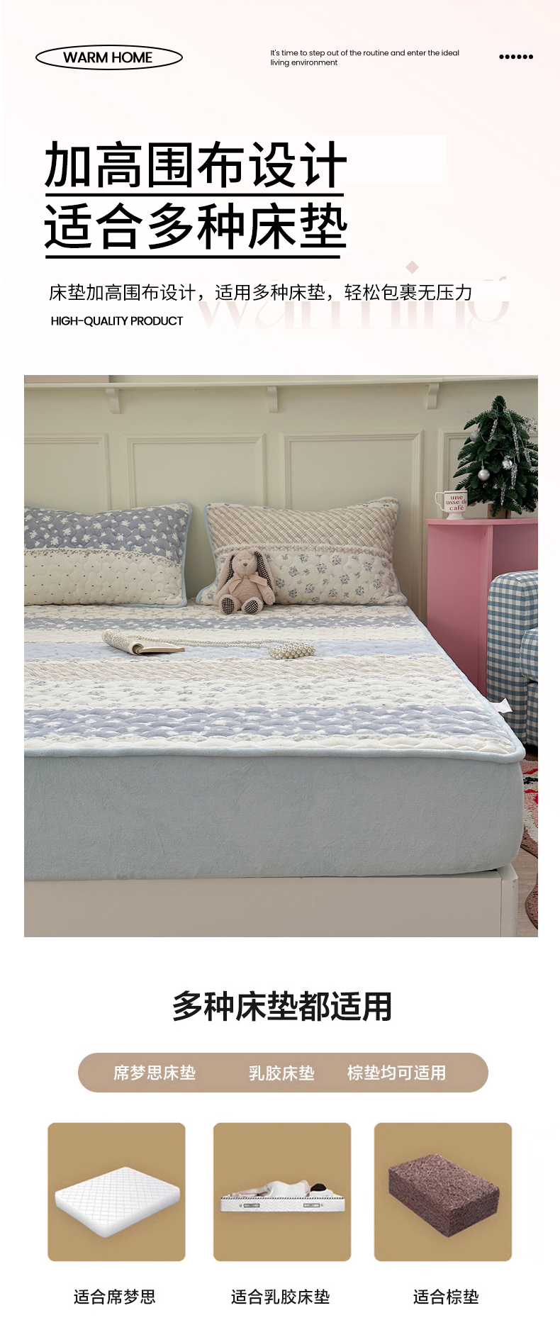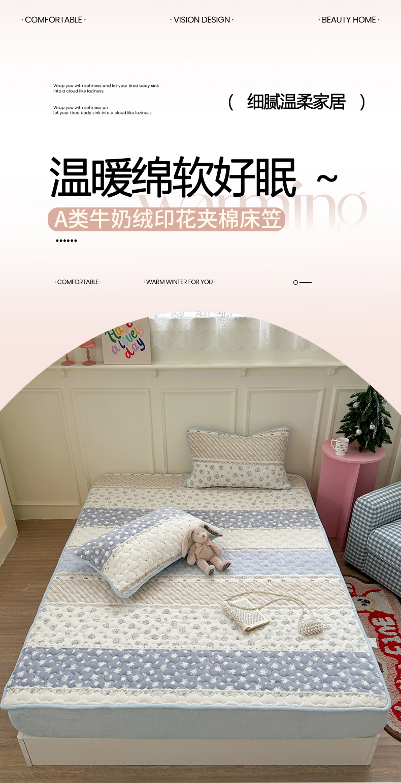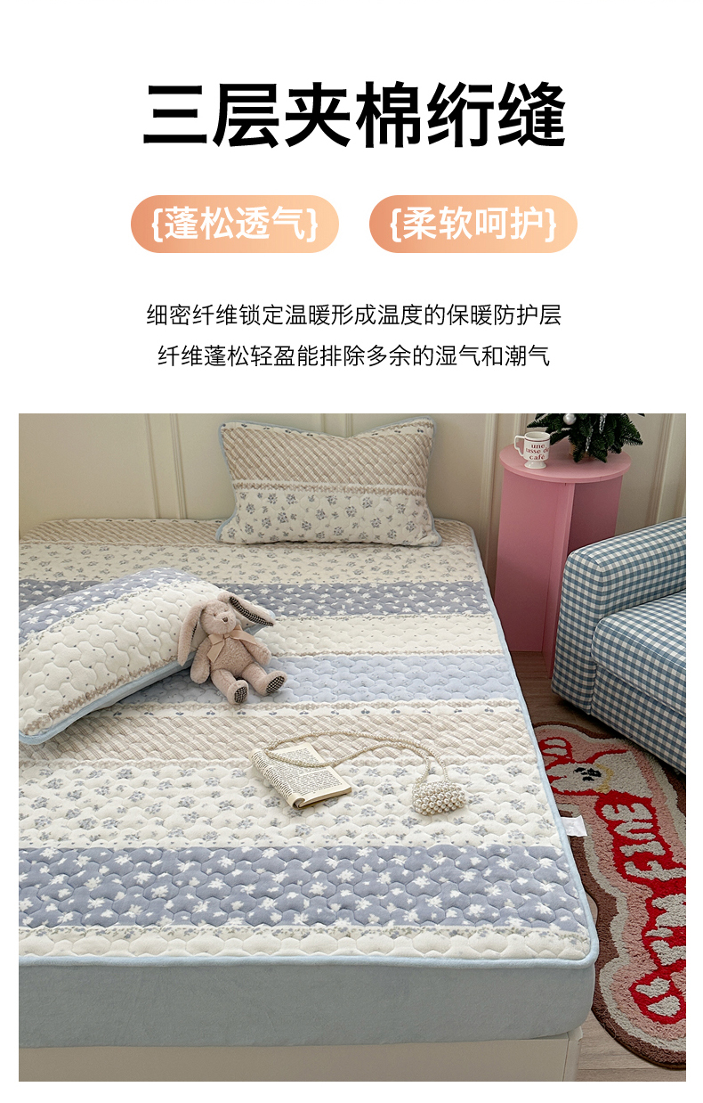 商品名称:Sweet dreams甜梦 2025新款高克重牛奶绒印花夹棉床笠 条纹花花