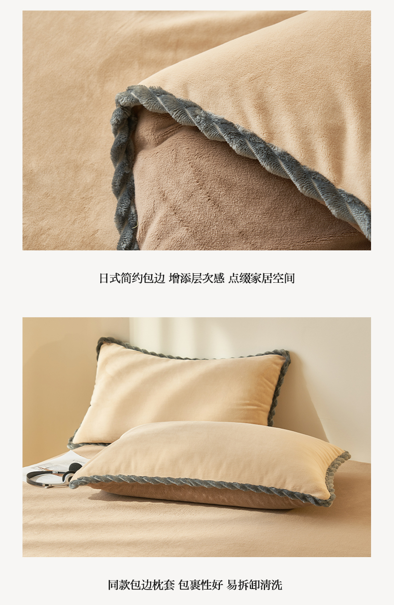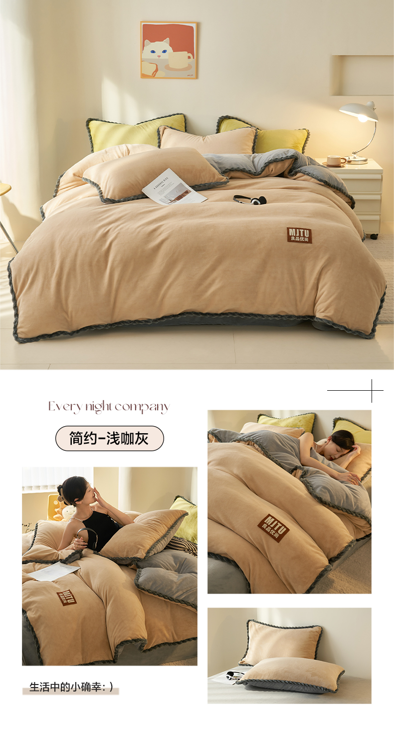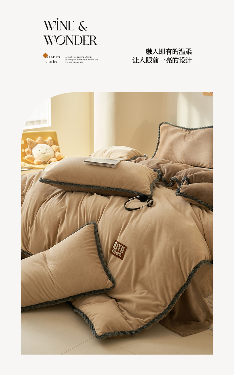 • 91家纺网 家纺一手货源 找家纺 晨曦家纺 2025新款加厚高克重230克日系简约小包边牛奶绒单被套 简约-深咖灰