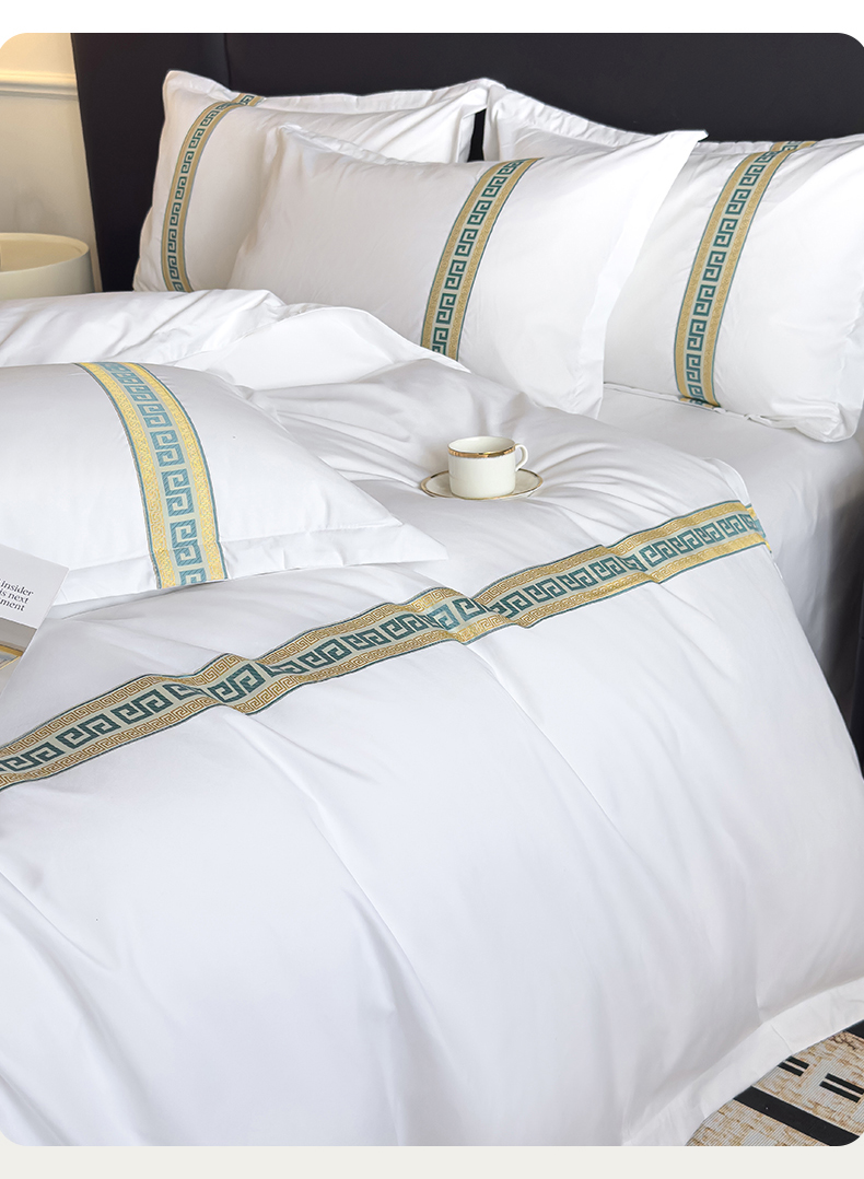 当前位置: 91家纺网 > 商品网购 > 床品套件 > 四件套 > 化纤活性四件套 > 梦庭帛美 2025新款酒店布草宾馆刺绣磨毛四件套 玫语