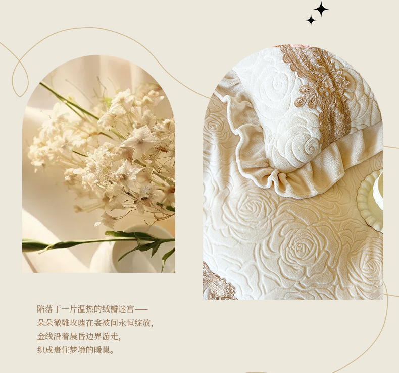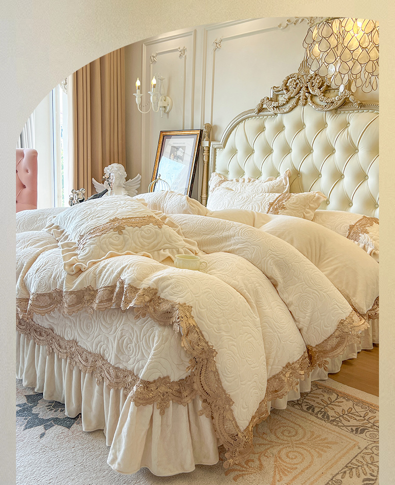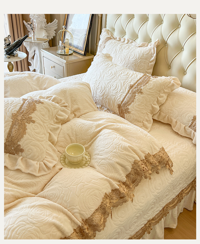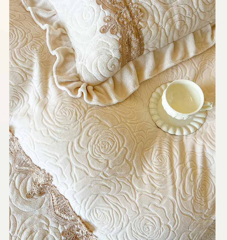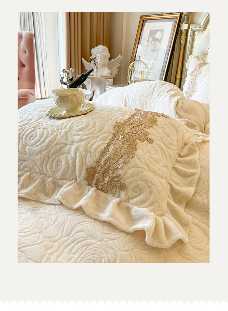 恋尚 2025新款雕花牛奶绒罗曼蒂克系列四件套(控价290) 罗曼蒂克-奶油白