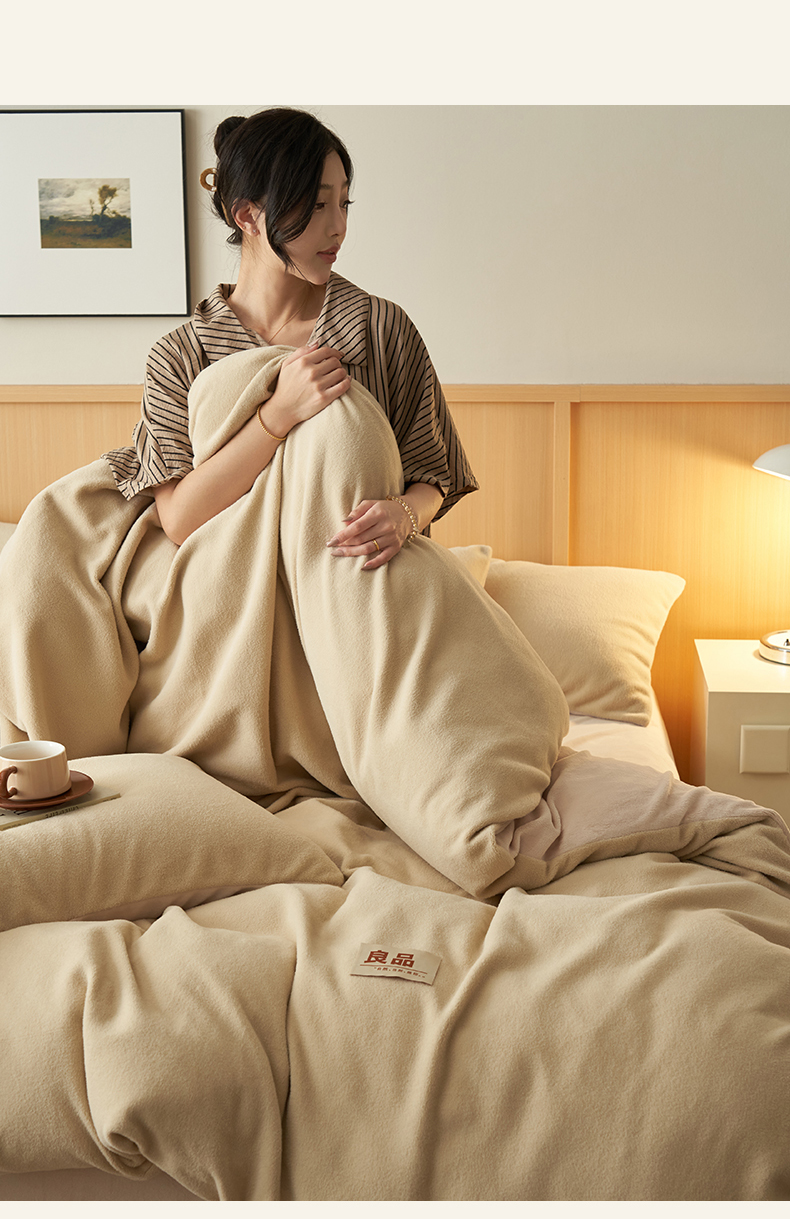 商品名称:金鹰 2025新款羊驼绒牛奶绒四件套保暖套件 羊驼绒-驼色