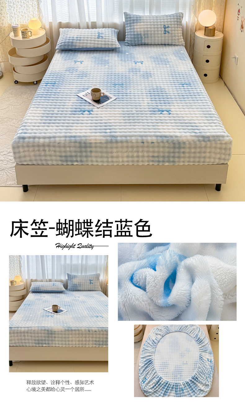 (总)小叮当家纺仓储工厂店 2025新款200克高克重牛奶绒单品床笠单件床笠,绒粉,绒黑,绒蓝