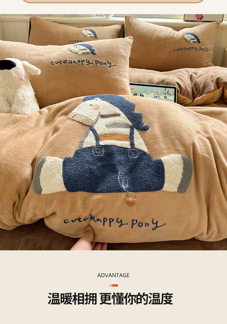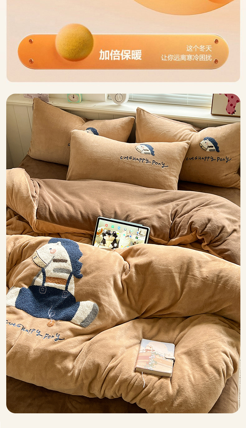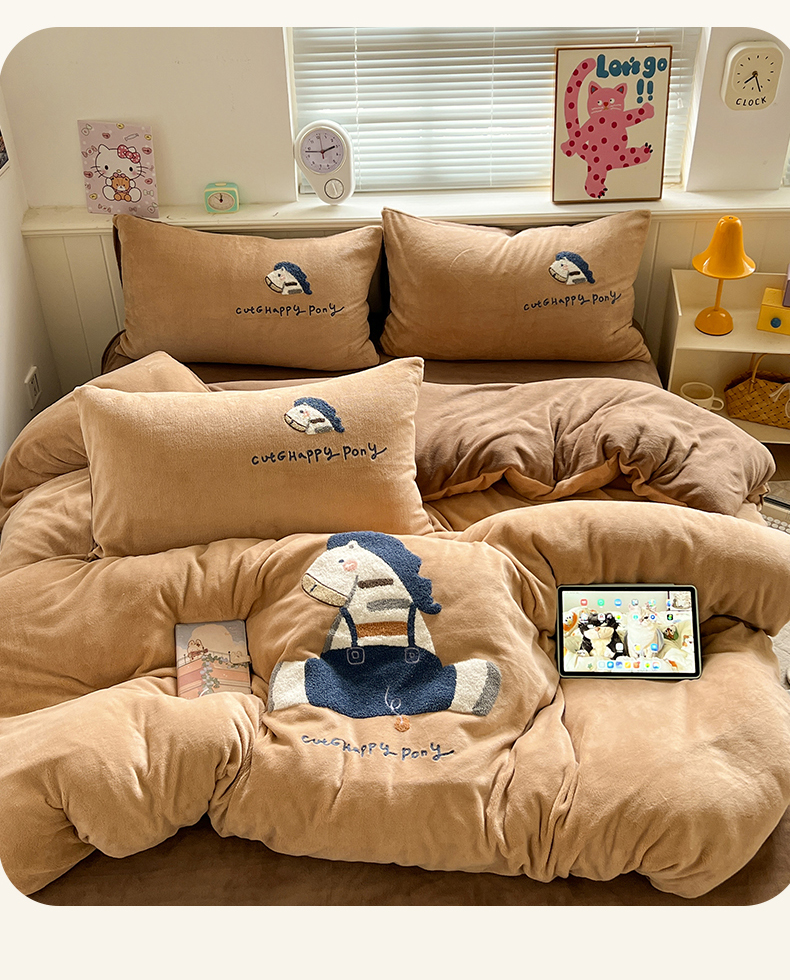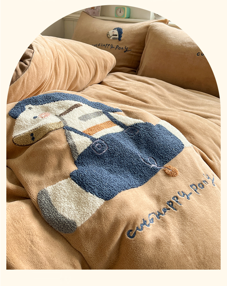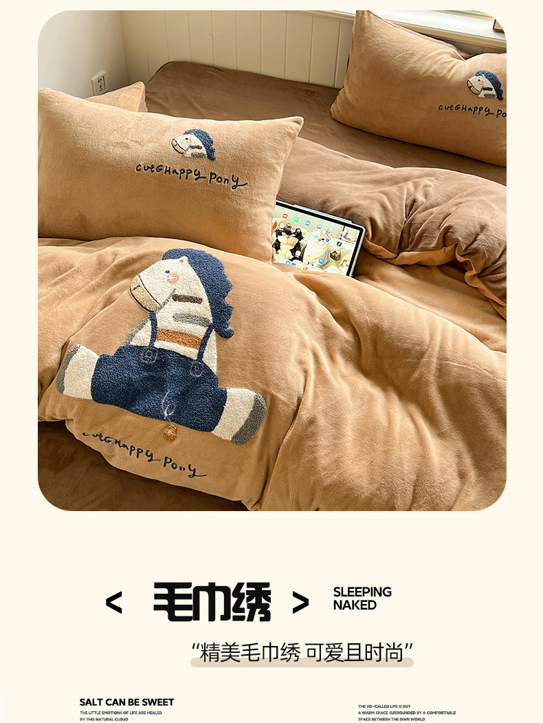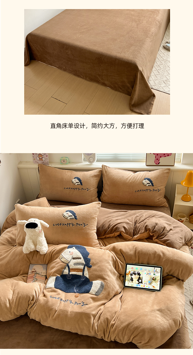商品名称:凯洛奇 2025新款牛奶绒毛巾绣系列四件套-斑马先生(提供买家秀) 斑马先生-咖啡