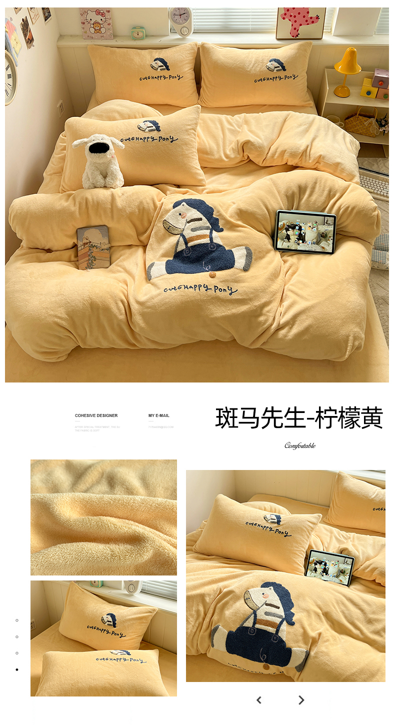 (总)凯洛奇 2025新款牛奶绒毛巾绣系列四件套-斑马先生(提供买家秀),斑马先生-咖啡,斑马先生-柠檬黄,斑马先生-米黄咖,斑马先生-天空蓝,斑马先生-米黄灰