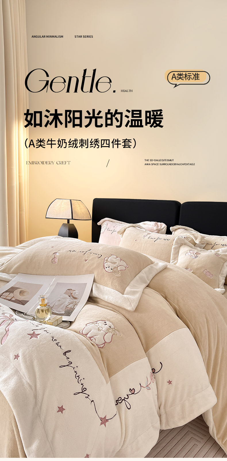 (总) 冬季直播爆款九斤重轻奢高端加厚保暖牛奶绒四件套刺绣宝宝绒轻奢风纯色床单被套床笠款床上用品-花迹,花迹-果汁粉,花迹-蜜豆红,花迹-椰奶蓝