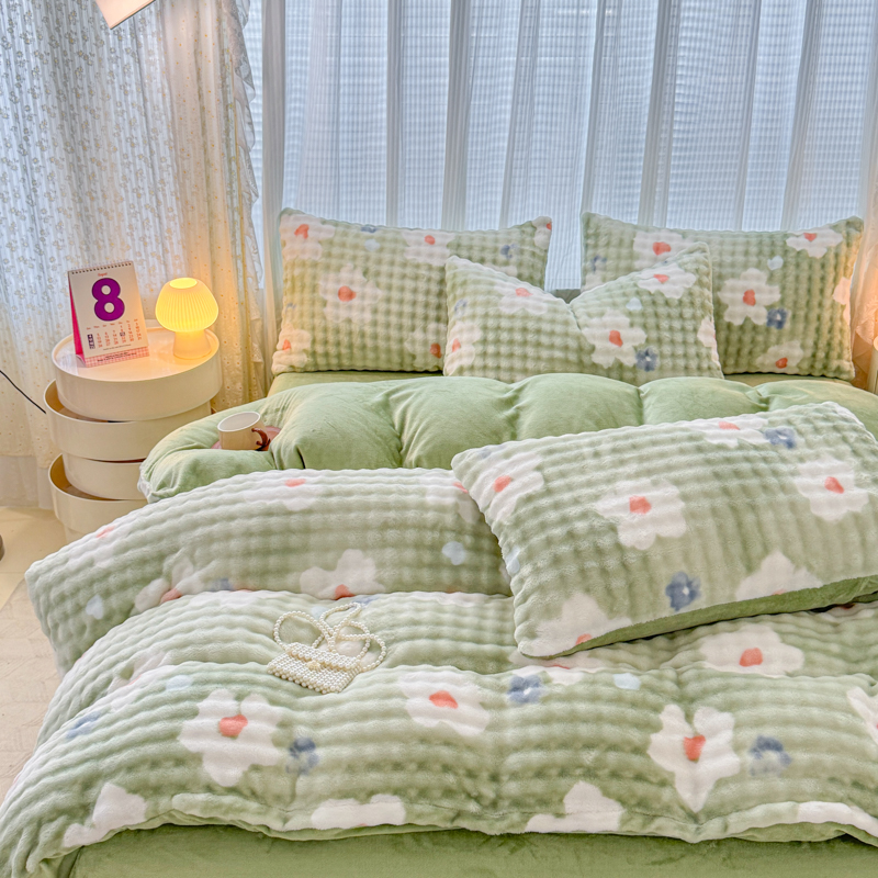 (总)(买家秀 爆款不断货)A类母婴级高克重獭兔绒四件套牛奶绒四件套牛奶绒四件套纯色韩版荷叶边兔毛绒四件套,泡泡粉玉,泡泡-滨海绿,泡泡-摩登卡,泡泡高级灰,泡泡卡其,泡泡奶白